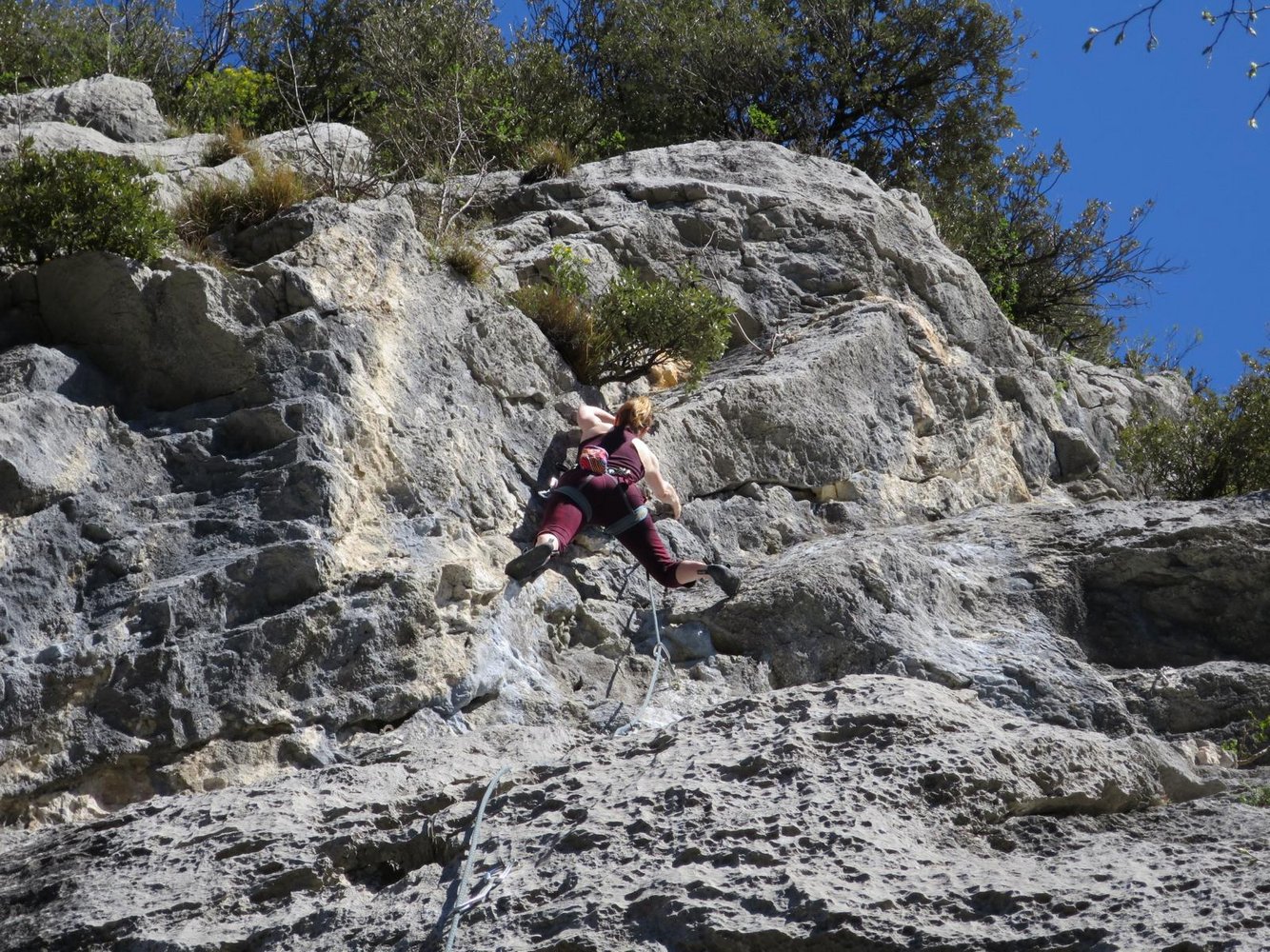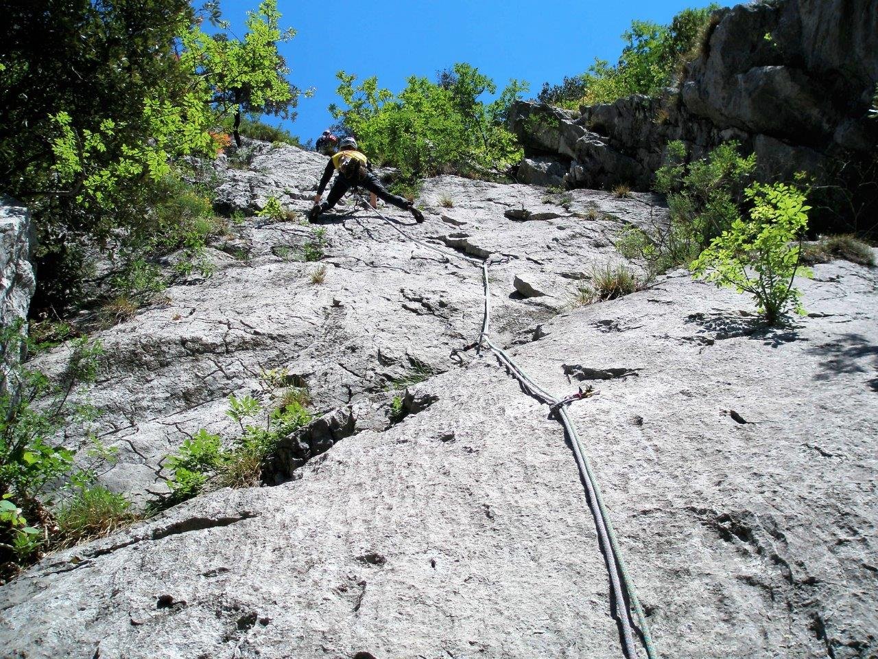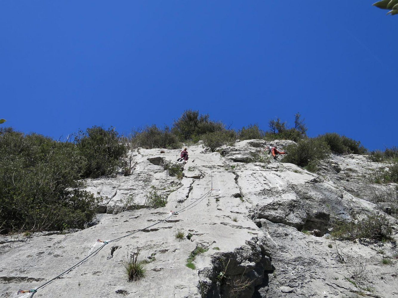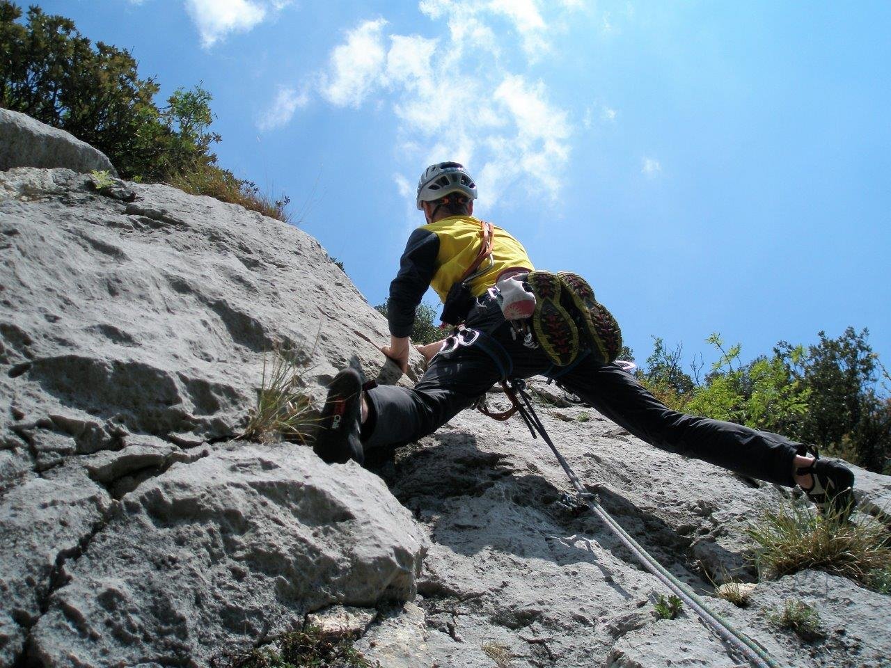 Sehr schöner und großer Klettergarten mit leichten Plaisir-Routen. Vielleicht der Top Klettergarten in Arco für Kletterer im Bereich 5-7. Die auf zwei Ebenen verteilten Touren sind nie richtig steil und perfekt mit Bohrhaken gesichert. Es gibt auch einige Mehrseillängen Touren und unter dem Gebiet noch zwei Sektoren mit ausschließlich leichten MSL Touren.