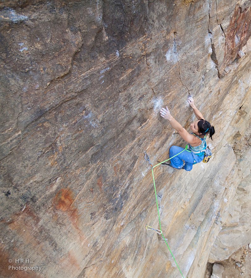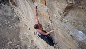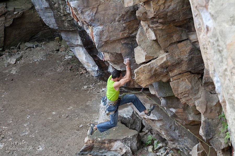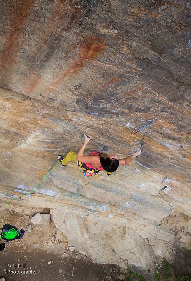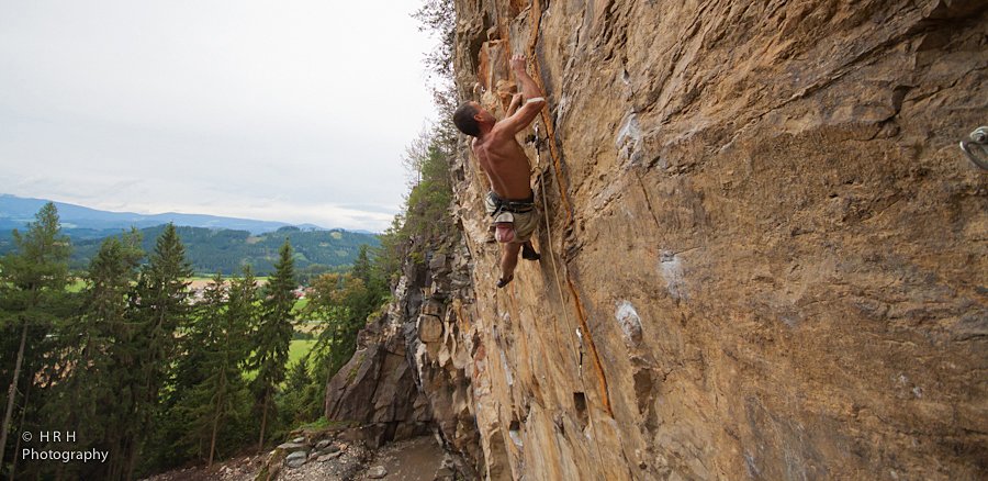 Art der Kletterei: überhängend mit Leisten und Rissen; boulderlastig