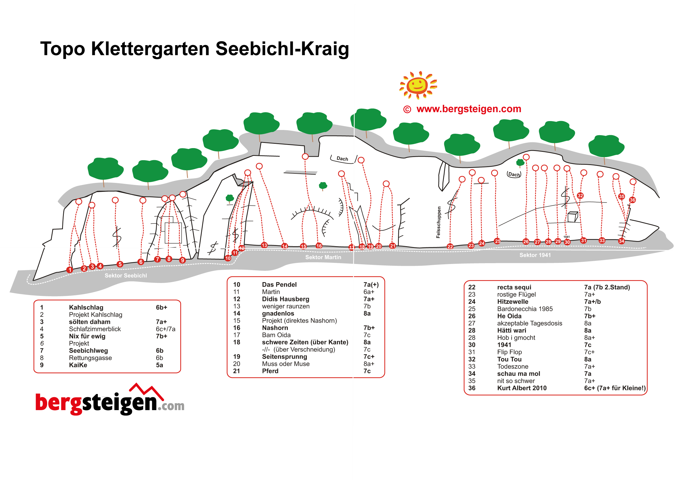 Aufgrund der vielen Regenfälle in diesem Sommer sind Felsen, die trotzdem trocken bleiben, gefragter denn je. Schließlich kann nicht jeder "last minute" weit weg in den Süden fliegen. Auch im Süden, aber nur wenige Autostunden von Wien entfernt, befindet sich in der Nähe von Klagenfurt Nord der neu eröffnete Klettergarten "Seebichl-Kraig".