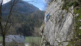 Kleiner Klettergarten gleich neben der Ennstal Bundestraße beim ehem. Gasthof Steinwirt. Es gibt einige sehr gut gesicherte, ganz leichte Routen und auch rd. 15 Kletterrouten zwischen 8 und 9. Bei schweren Routen Routen dominiert kleingriffige boulderartige Kletterei.