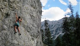 ACHTUNG: Der Klettergarten ist durch den darüber verlaufenden Stockerwandsteig und einem Gämsen-Einzugsgebiet steinschlaggefährdet. Es wird empfohlen, mit Helm zu klettern. Daher auch trotz des gutmütigen Einstiegsbereichs nicht kinderfreundlich.