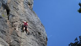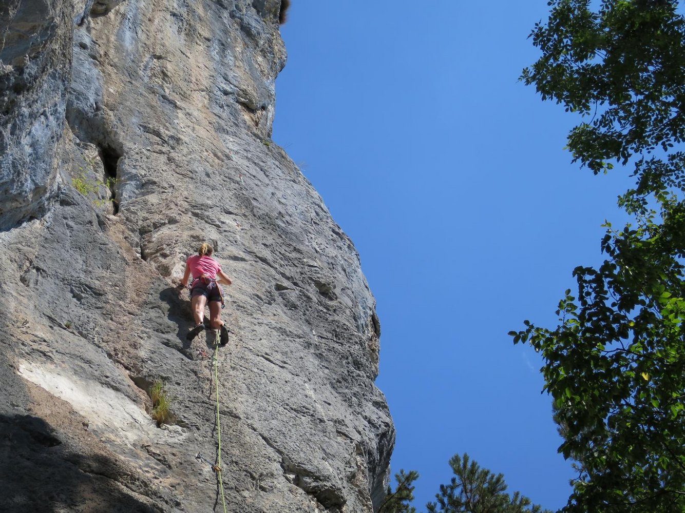 Schöner, sonniger Klettergarten über dem Ort Stenico. Die Routen sind gut gesichert und bieten abwechslungsreiche Kletterei an Tropflöchern und Sintern.