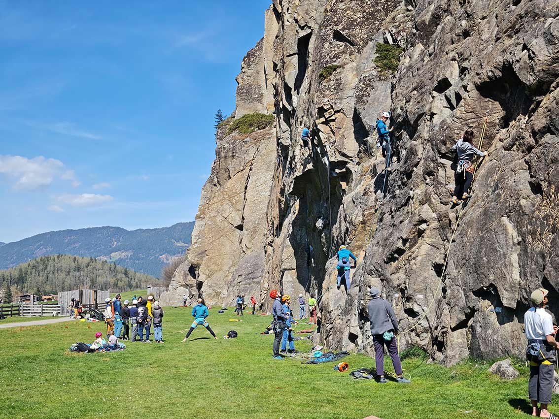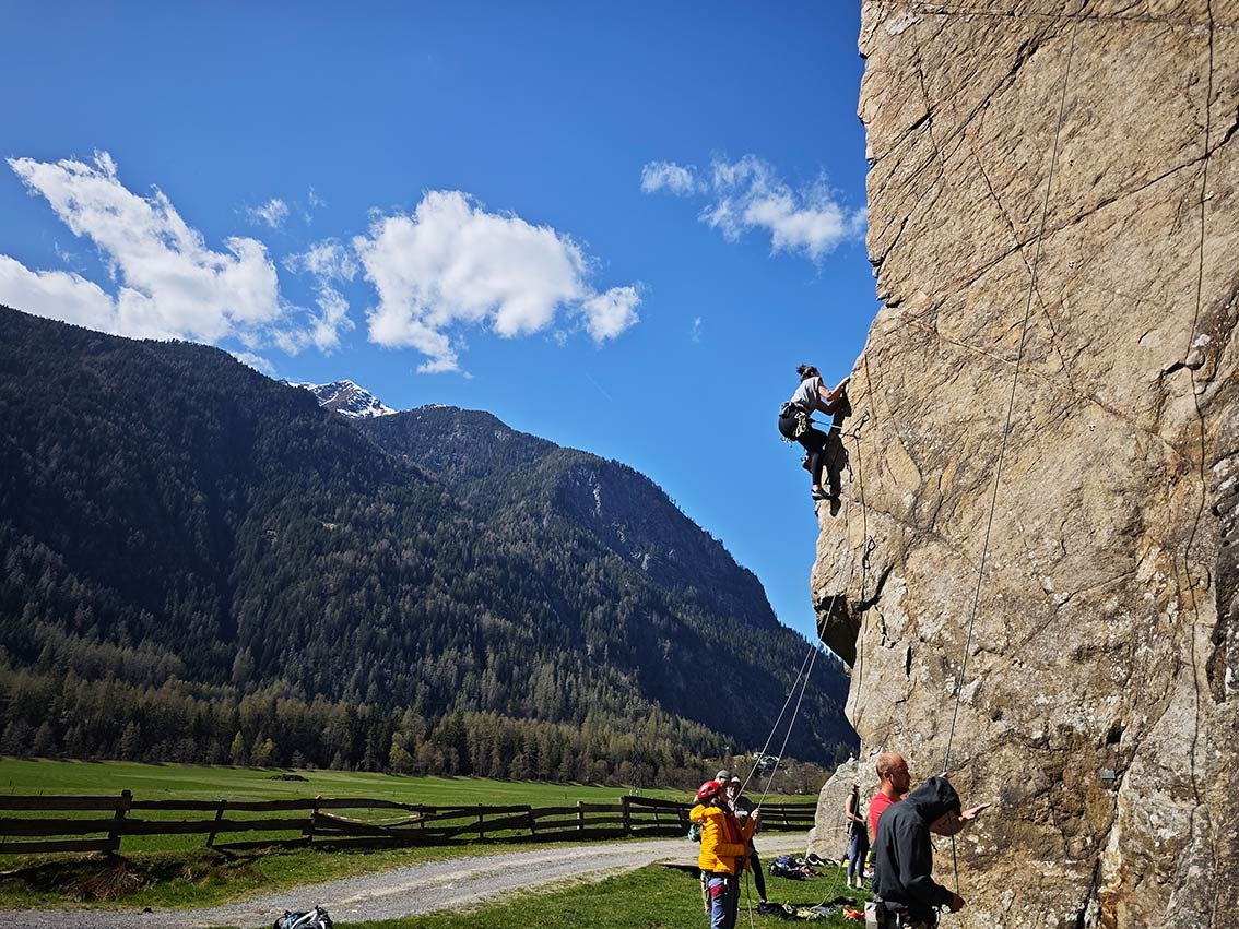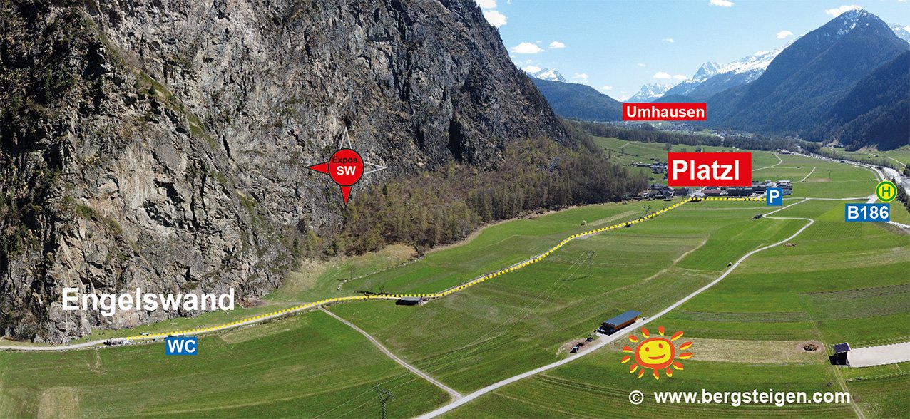 Die Engelswand ist einer der beliebtesten Klettergärten im Ötztal! Die Felswand liegt direkt an einer kinderfreundlichen Wiese und wird somit auch gerne von Familien besucht – selten hat ein Klettergarten so einen schönen Einstiegsbereich, in dem sich unsere kleinen Nachwuchscracks wohlfühlen. Die senkrechte Felswand mit vielen gut gesicherten Routen ist aber auch nicht zu verachten, die Schwierigkeit liegt vor allem im 6. bis 8. Grad. Es wurde im rechten Wandteil auch ein Sektor für Anfänger geschaffen. Es macht einfach Spaß, in Kletterpausen auf der grünen Wiese zu sitzen und zu den im Frühjahr meist mit Schnee bedeckten Gipfeln im Ötztal zu schauen.