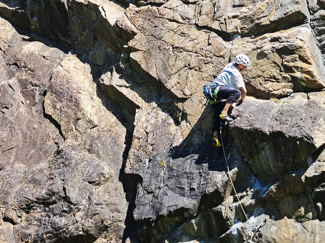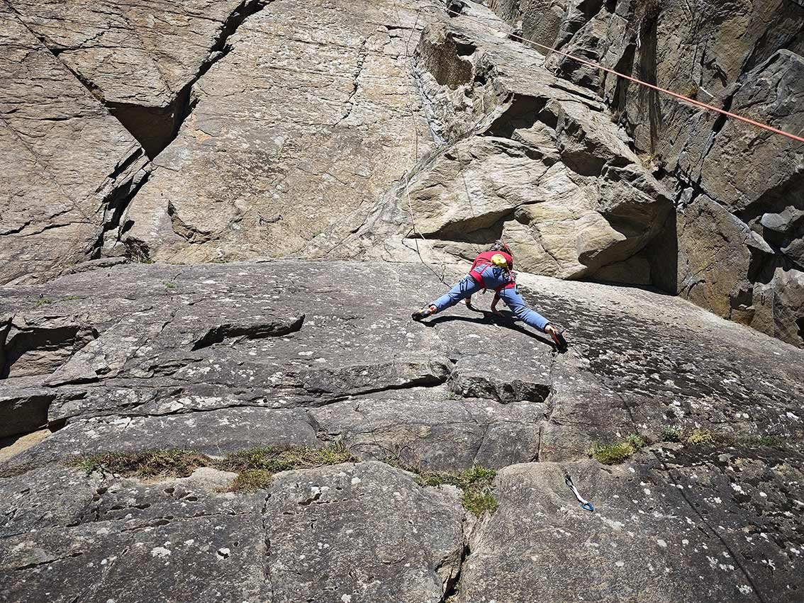 Granit mit vielen kleinen Leisten, senkrecht bis leicht überhängend.