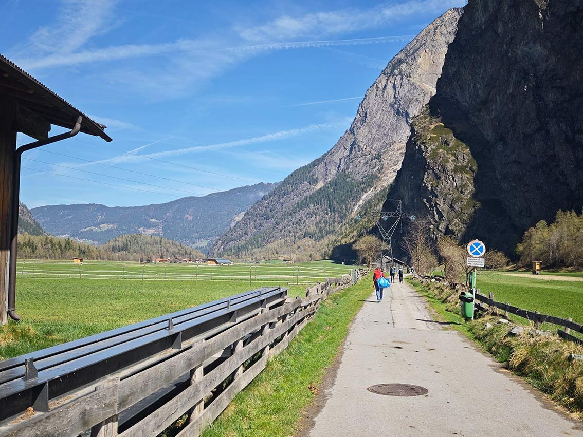 Achtung: Der Schotterweg unter der Wand wird auch vereinzelt von Radfahrern genutzt - kleine Kinder also im Auge behalten.