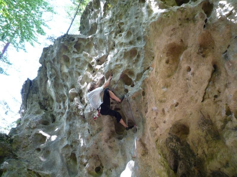 Kleiner, netter Klettergarten bei Scheiblingkirchen mit teils sehr teilen und großgriffigen Routen. Die "keltischen" Routennamen stammen von Thomas Behm.