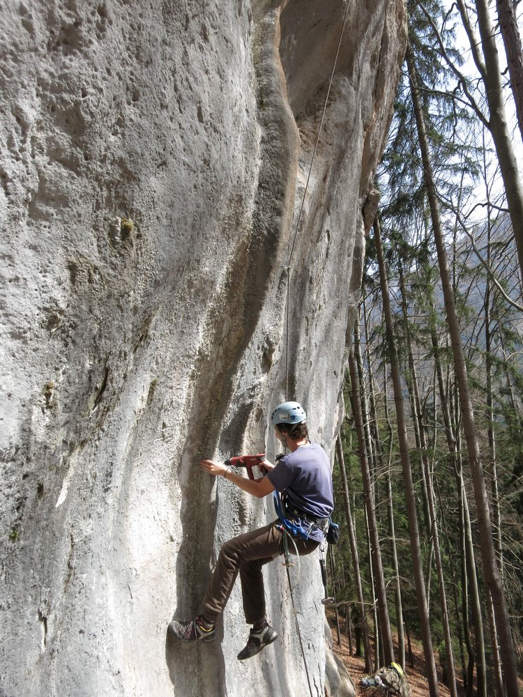 gut mit Bohrhaken abgesichert, z.T. etwas weitere Abstände