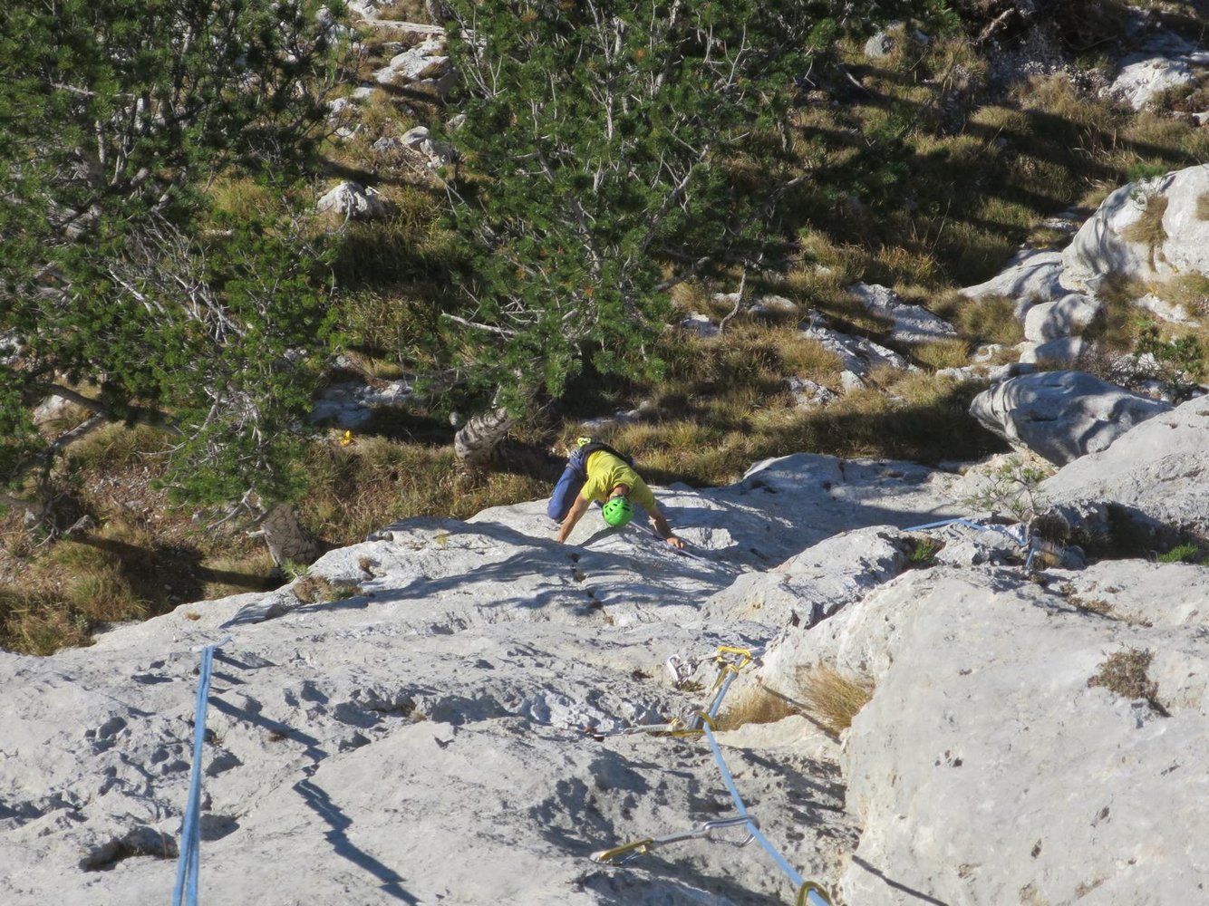 Kein Klettergarten für jemand der frisch aus der Halle kommt, angehende Alpinisten können hier aber einen wundervollen, ruhigen und insbesondere auch sonnigen Klettertag verbringen.