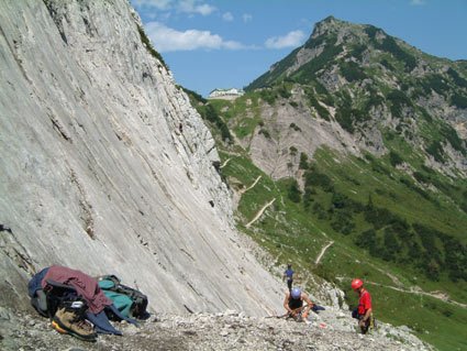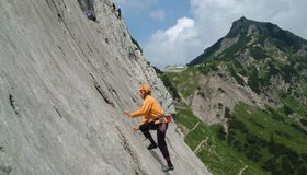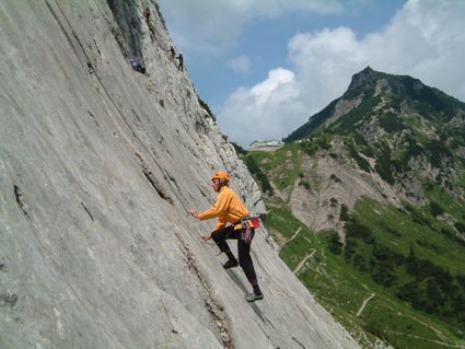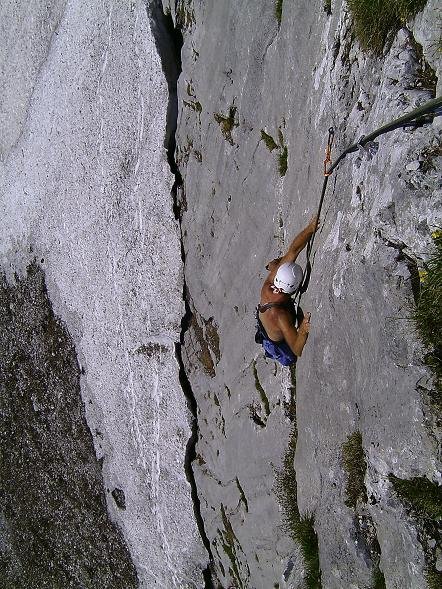 Schöner Klettergarten mit vielen bis zu 4 Seillängen langen Routen. Perfekter Wasserrillen-Fels (nur in der ersten Seillänge etwas glatt...) und sehr gute Absicherung machen das Klettern zum Genuß. Die Schwierigkeit ist im Plaisir-Niveau angesiedelt (meist 5 - 6+), was zur Folge hat, dass die Wand an guten Tagen meist sehr gut besucht ist. Es gibt auch noch andere interessante Routen in dieser Region, Infos gibt es auf der Hütte. Die Routen sind zum Teil angeschrieben, es kann bei jedem Stand abgeseilt werden.