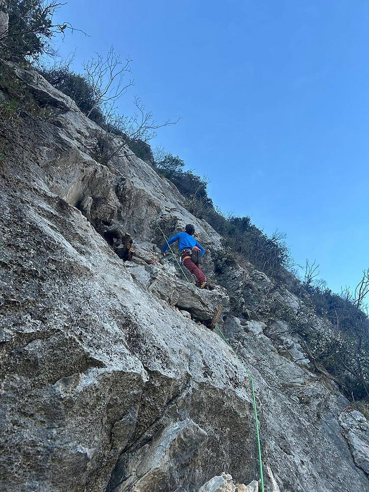 Siehe Topo. Dieses ist vorab Alpinverlag Tourenapp Plaisir Climbing Lago di Garda - Arco abrufbar.