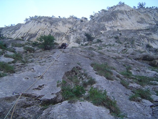 Die Route ist sehr gut mit Schwerlastankern und doppel Bolts an den Ständen gesichert.