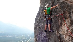 2 x 60 m Doppelseil oder 1 x 70 m Einfachseil, 12 Expressschlingen und Helm