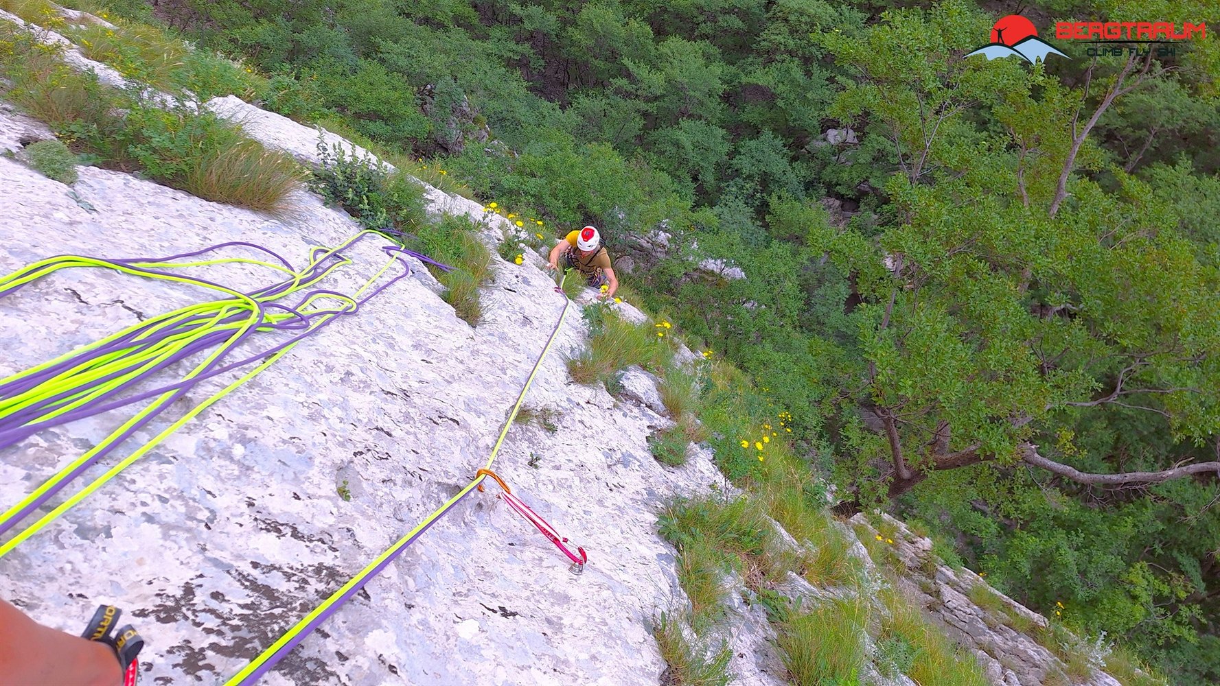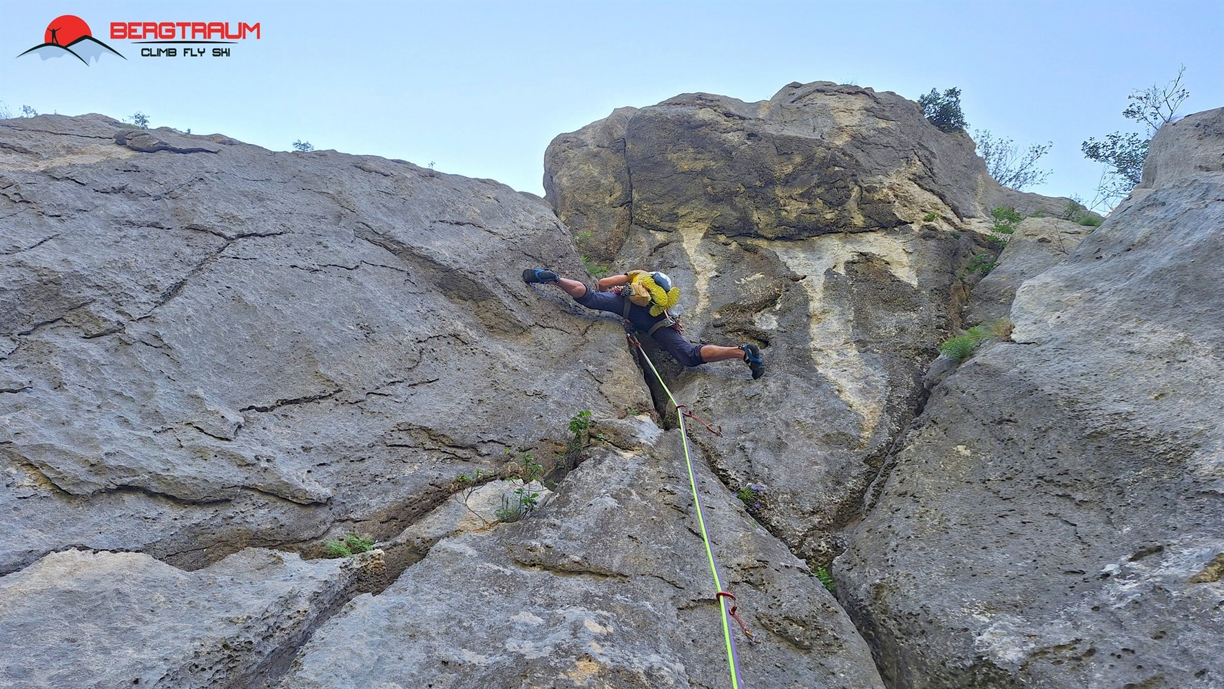 Eine relativ neue Linie ganz oben an der N- Seite des Kuk von B. Cujic. Einstieg im Nahbereich der End Game. In Kombination mit den benachbarten Linien (z. B. Michelini 4…) ist das perfekt für den ersten oder letzten Klettertag. Der Fels ist in der ersten Seillänge für Paklenica ungewöhnlich „schlecht“, wird aber ab der zweiten Länge bis oben rauf immer besser. Ab der dritten Länge ist es wieder Edelfels.