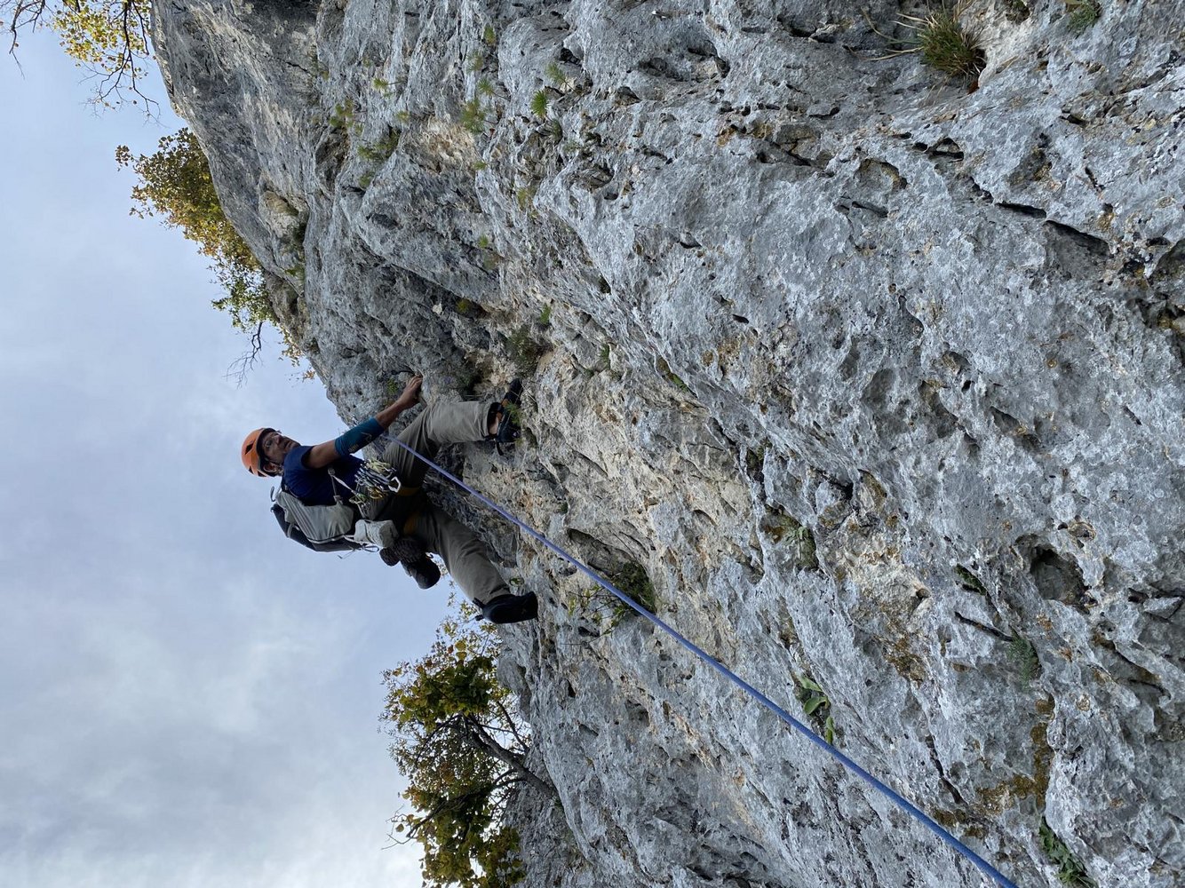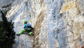 50 m Einfachseil , 13 Expressschlingen, Bandschlingen und Helm