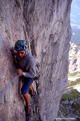 Sehr schöne, abwechslungsreiche Wandkletterei in sehr festem Fels. Teilweise sehr ausgesetzt (Quergang)