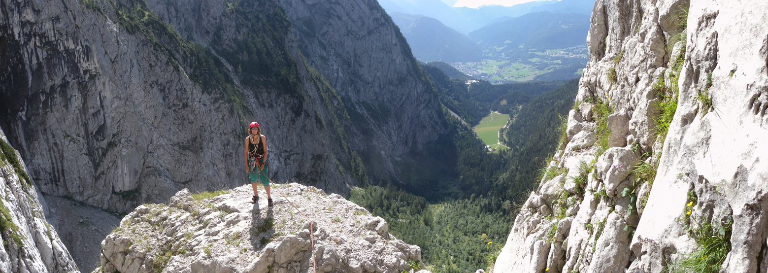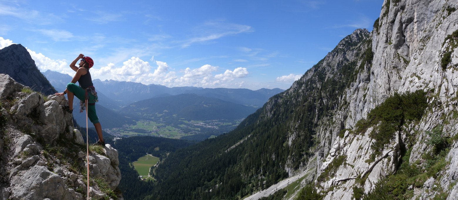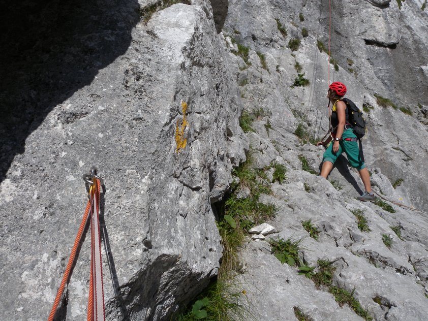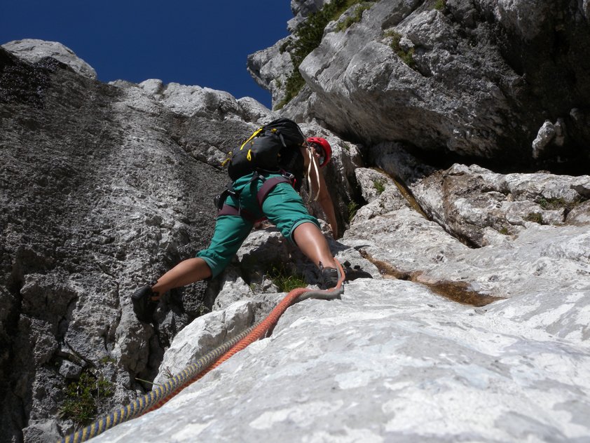 Den oberen 3ten Grad sollte man solide klettern und das Abseilen sollte man gut beherrschen.