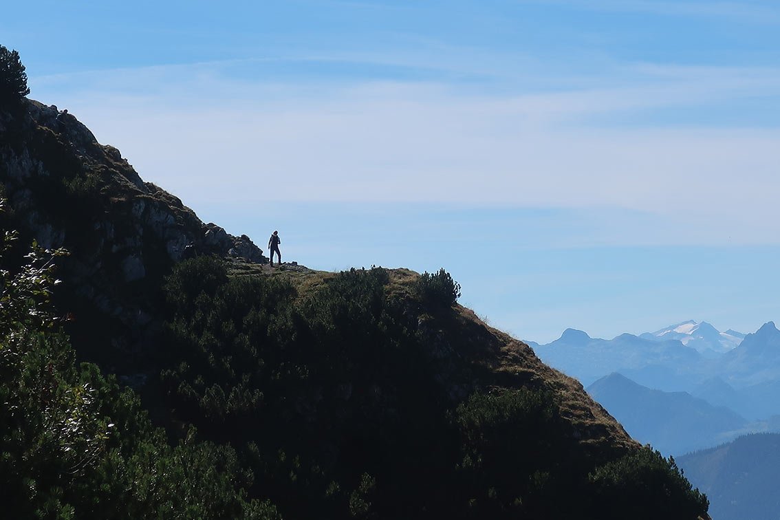 Der alte Weg - wie der Name schon sagt, handelt es sich um eine Route mit "alpin klassischem" Charakter. Im Mittelteil muss der Kletterer mit Latschen und Gras zurechtkommen, dafür bieten die Seillängen 1, 2, 4 und 6 wirklich schöne Kletterei an meist gutem Fels; die Kletterei ist auch recht abwechslungsreich, Gratpassagen, schöne Wandstellen und kleine, steile Felsstufen sind zu überwinden. Mit nur geringem Mehraufwand wird außerdem auch der perfekte Aussichtsgipfel erreicht. Die Route eignet sich zum Einstieg in das alpine Klettern, wobei der Kaltstart in die erste Seillänge besser vom erfahreneren Kletterer der Seilschaft begonnen wird.