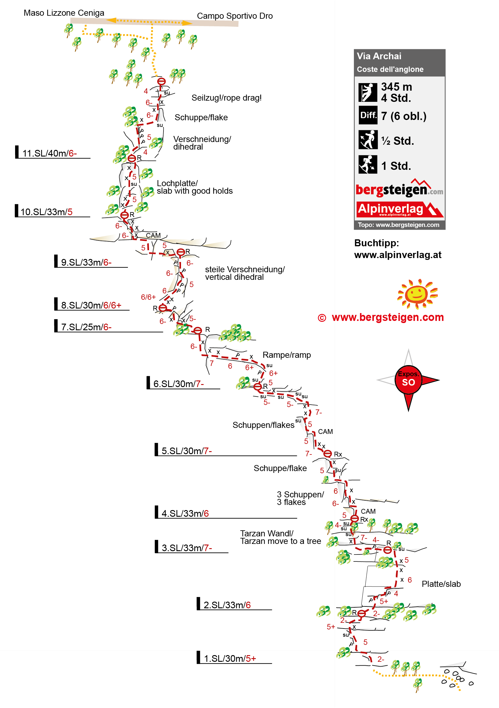 Kletterlänge / Gesamthöhe / Kletterzeit / Gesamtzeit 380 m  /  420 Hm
