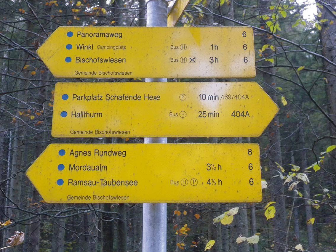 Wegweiser beim Zustieg zur "Schlafenden Hexe"