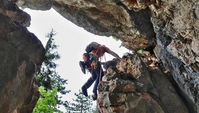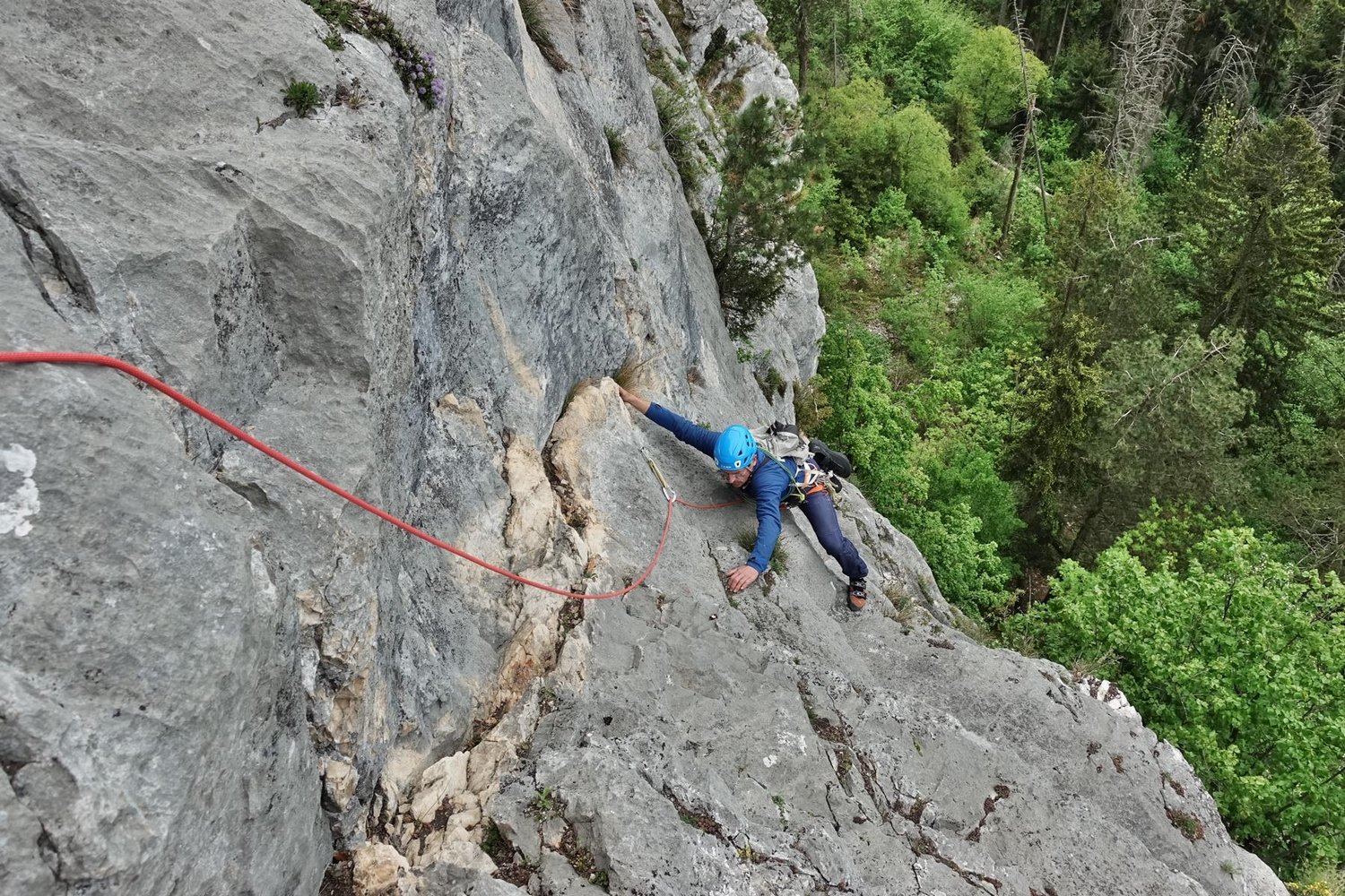Eine Stelle 6+, in der 2. SL kann man die rechte, neue Variante 6+/7- klettern