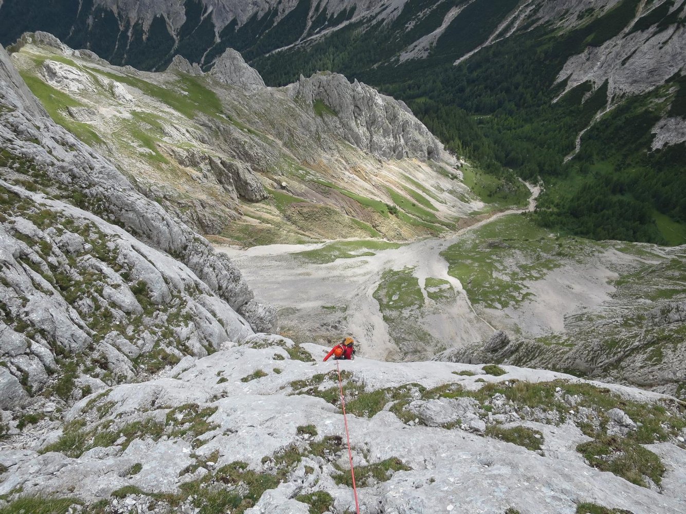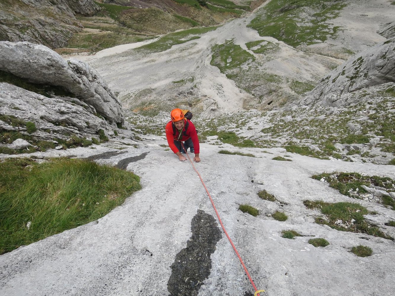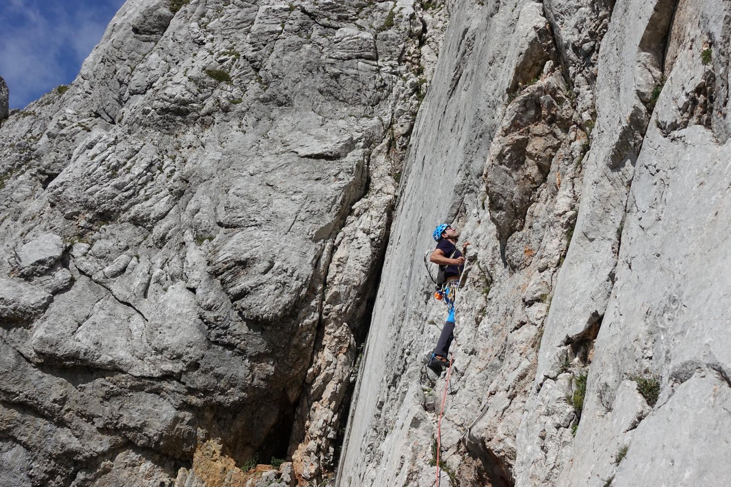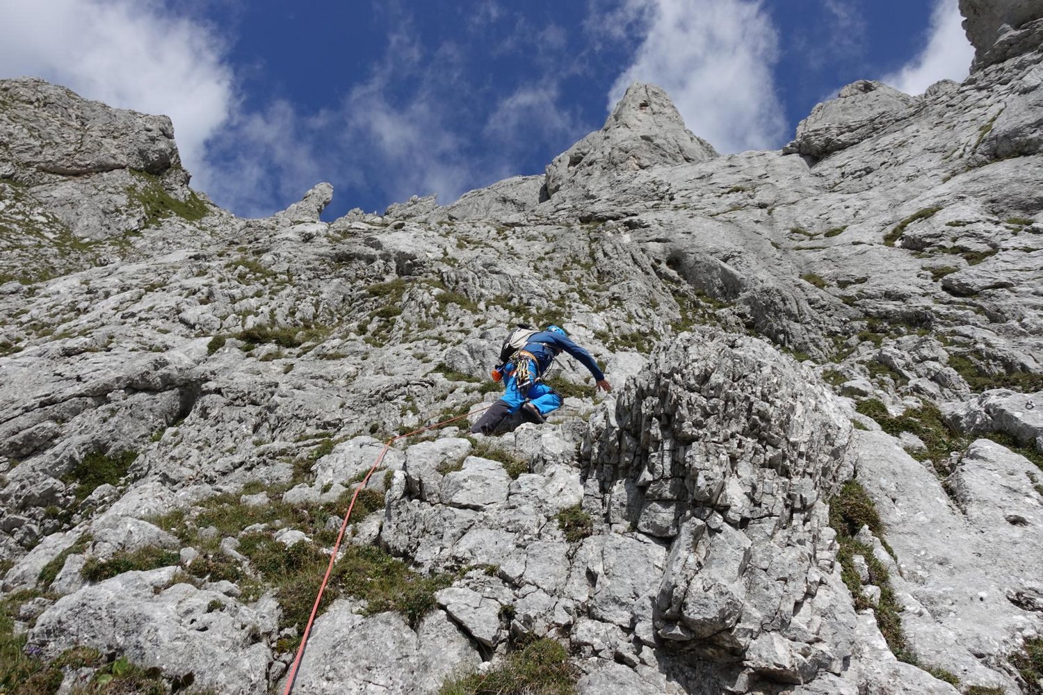 Lange und trotz der an den schwierigen Stellen guten Bohrhakenabsicherung aufgrund des verbreitet brüchigen Felses alpine Route. In der fünften Seillänge wartet eine wunderschöne Platte und die steile Schlüsselseillänge löst sich sensationell gut auf. Insgesamt ein lohnendes alpines Hochschwab-Abenteuer.