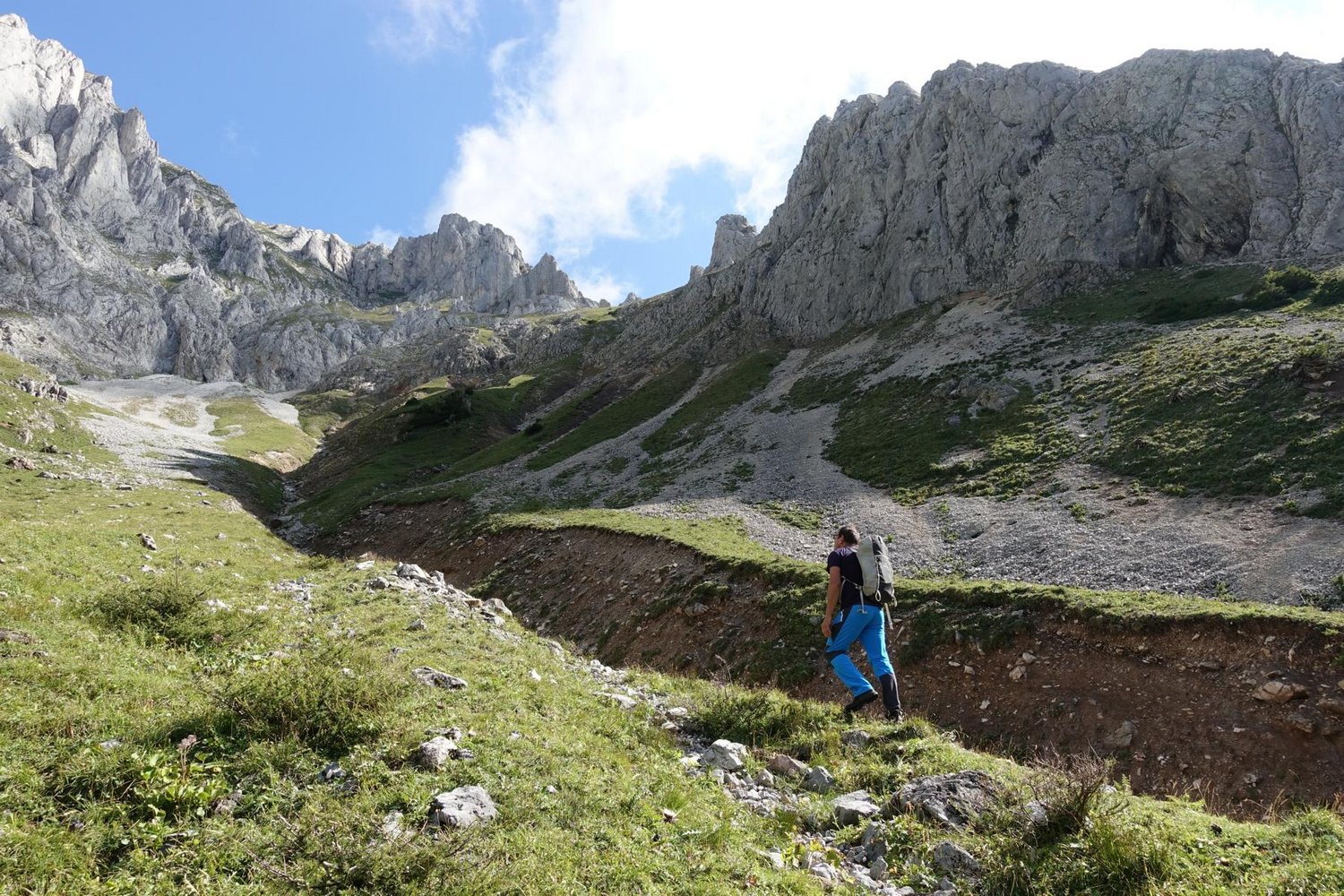 Vom Ausstieg aufsteigen und nach norden zum Wanderweg gehen. Auf diesem nach Osten auf dem Hochplateau bis zum Abzweiger (großer Steinmann) ins steile Bruchtal. Hier rechts nach Seewiesen absteigen.