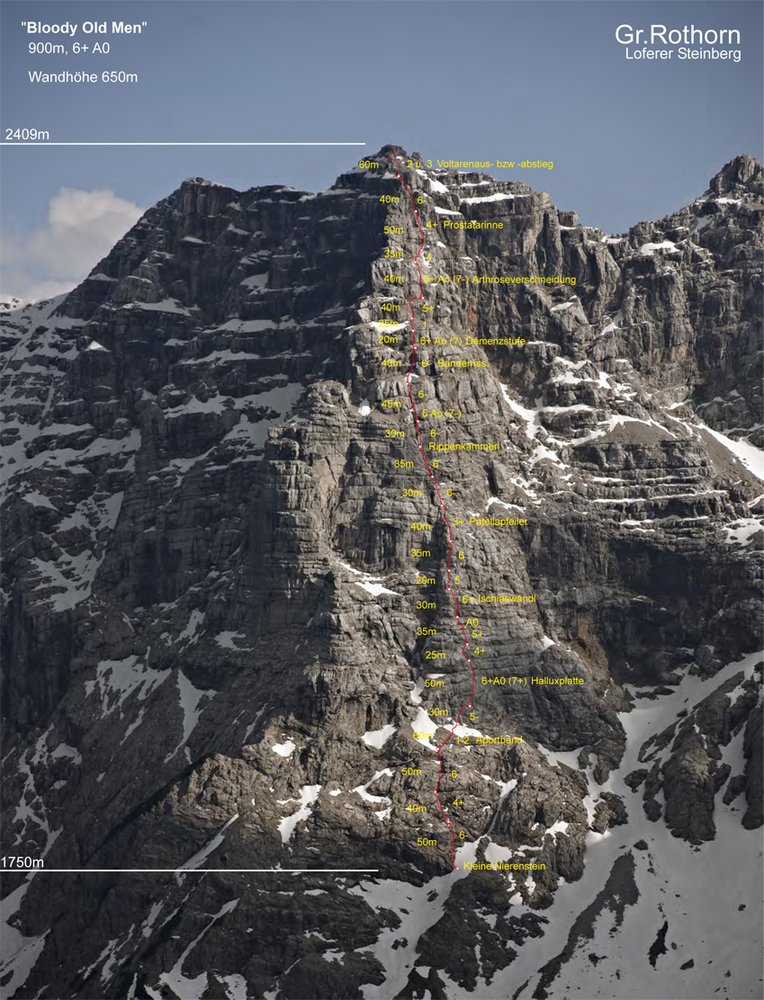 Sehr lange, gut gesicherte Kletterei an kompaktem Fels. Die Route führt durch eine große, alpine Wand in direttissimaähnlicher Linienführung. Alpines Verständnis ist trotz guter Absicherung gefragt. Herrliches Ambiente - mit dem langen Zu- und komplizierten Abstieg nicht zu unterschätzendes Unternehmen.