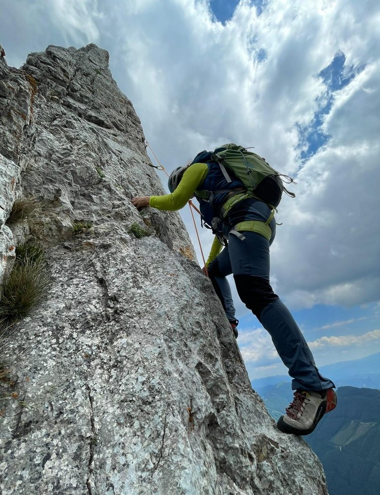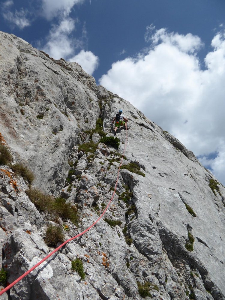 Sehr schöne und auch perfekt abgesicherte Route, für die sich der etwas längere Zustieg lohnt. Die Kletterei verläuft großteils an Platten und bietet von unten bis oben sehr schönen Fels.