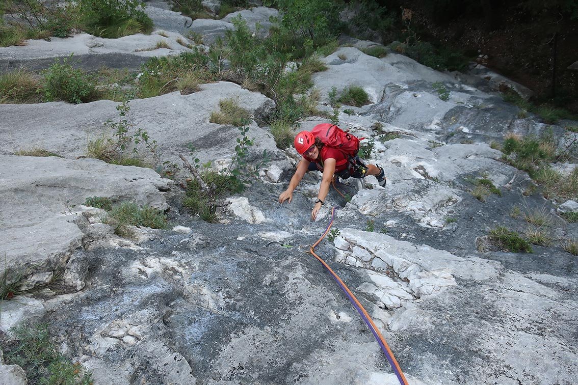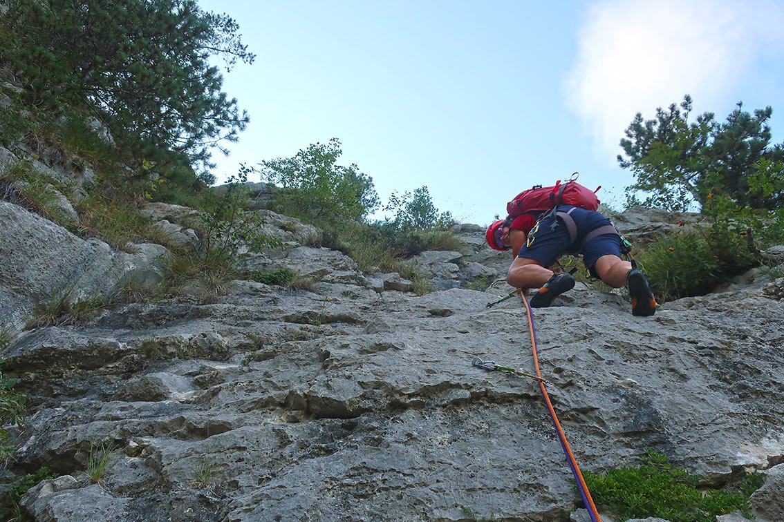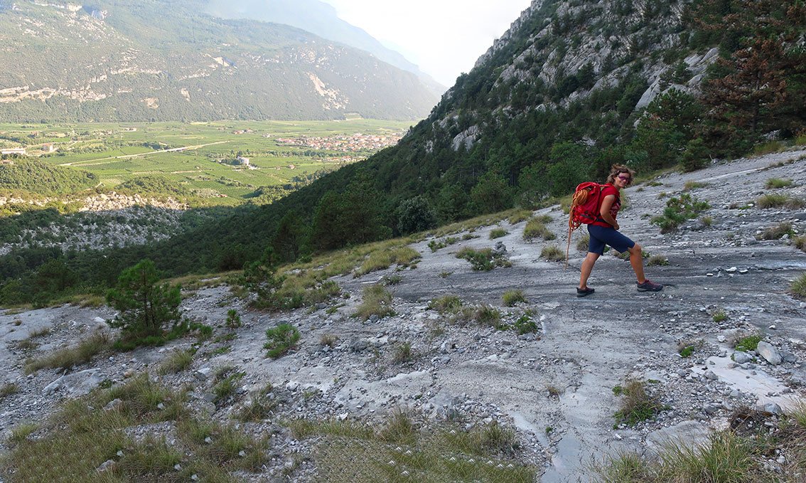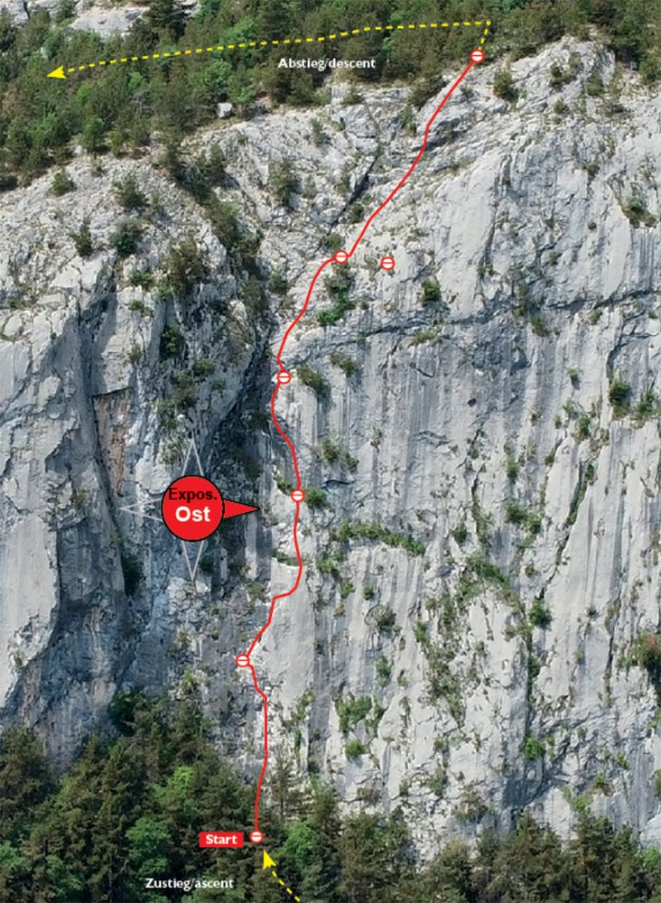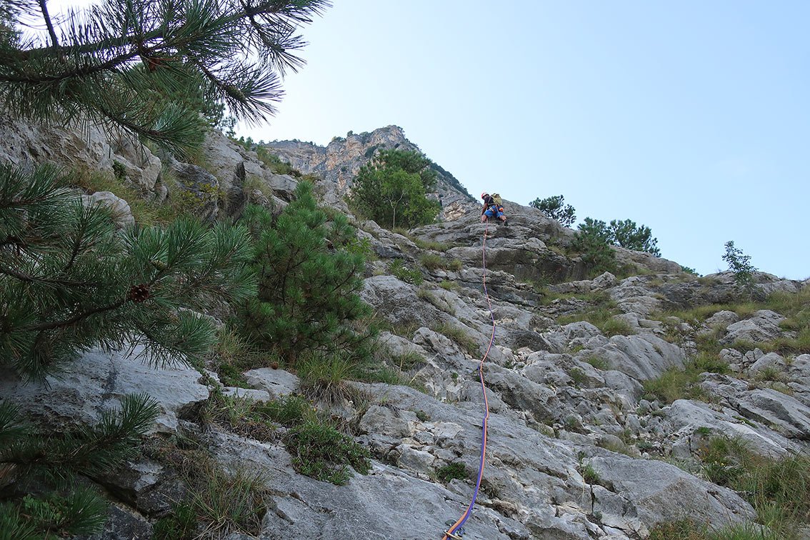 Achtung: Die kurze Plattenpassage beim Abstieg ist bei Nässe heikel (es stecken aber Bohrhaken, bei Bedarf kann man sich sichern)!
