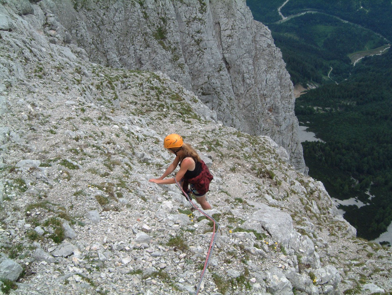 Beim Zustieg kurz vor dem Sattel herrscht extreme Steinschlaggefahr vom Südwandsteig!