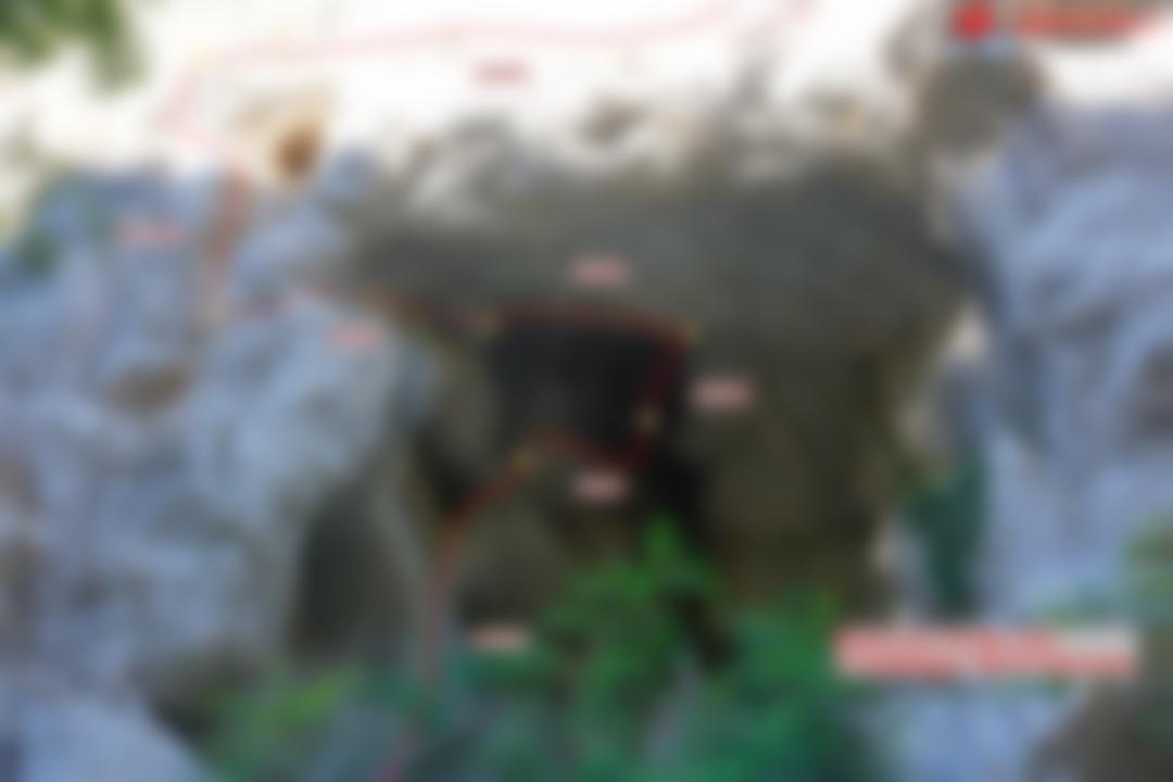 Würde man eine Wertung für die mit Abstand verrückteste Felsklettertour einführen, wäre diese Linie ganz vorne mit dabei. An bis zu zwei Meter langen Stalaktiten ein horizontal (leicht abfallendes) Grottendach zu über- (oder auch unter) klettern macht man wahrscheinlich nur einmal in seinem Kletterleben.