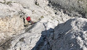 Abseilen über die Route und auf dem schon bekannten Zustiegsweg zurück zur Griesner Alm.