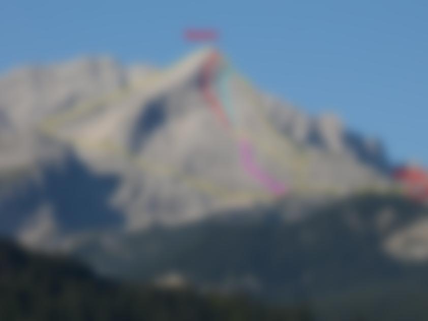 Die BW3 ist die leichteste der Alpspitze Sockeltouren und ist wegen ihrer guten Bohrhakenabsicherung sehr beliebt. Am besten man nimmt unten den Mecki Pfeiler als Einstieg mit. Wer genug Kondition hat, hängt oben die Adamplatte dran - so ergibt sich eine gewaltige Klettertour die auf dem Gipfel der Alpspitze endet.
