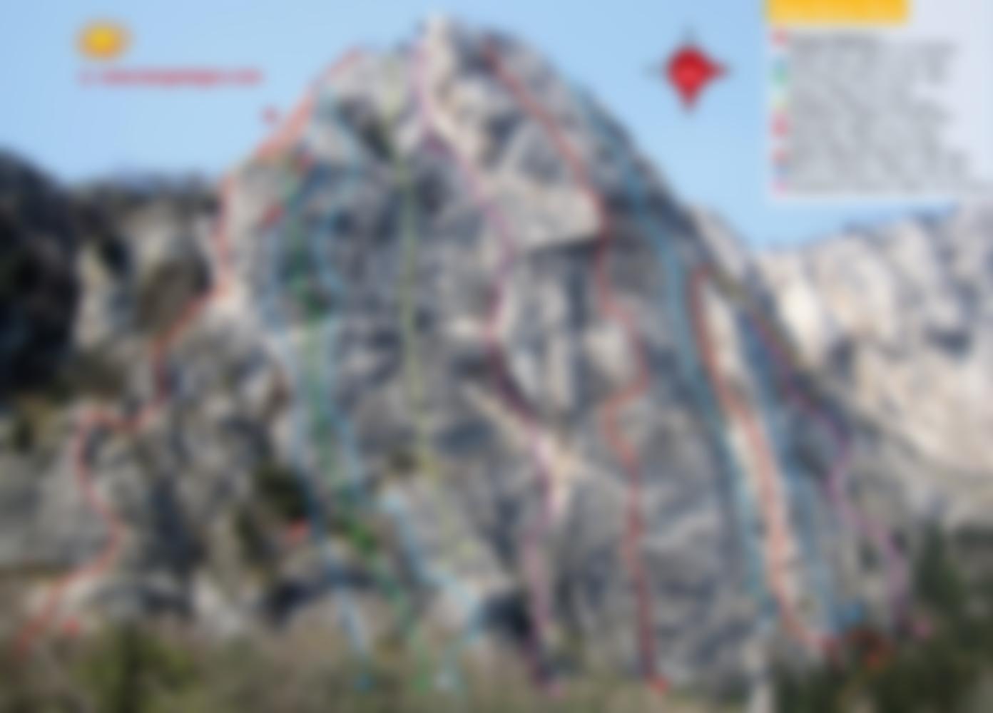 Früher konnte man nach dem ersten Teil zur Straße unterhalb von Laghel absteigen. Dort wurde jetzt eine Villa gebaut und der Besitzer will keine Kletterer auf seinem Grund haben - es wurde ein Zaun gebaut.