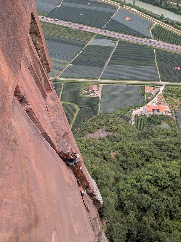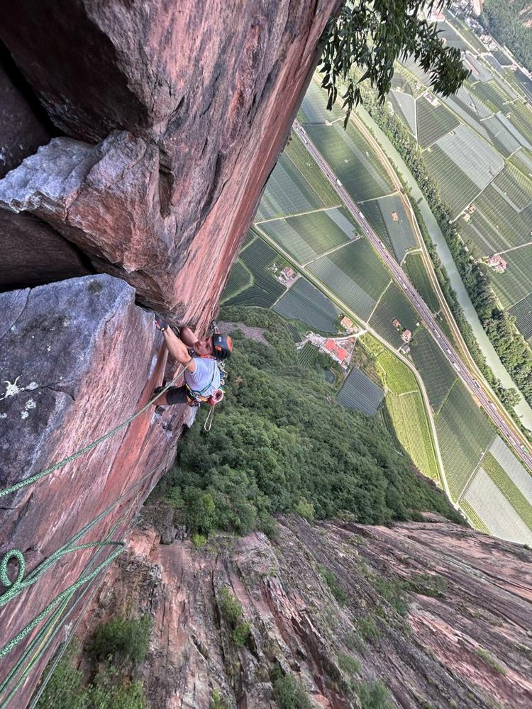 Cojote ist die wohl bekannteste und schönste Rissklettertour in Bozen. Die Tour ist an den Pfattner Wänden und bis auf die Stände und ein paar versenkten Fixfriends komplett clean - lässt sich auch perfekt mit mobilen Sicherungsmitteln absichern. Die Tour hat je nachdem wie weit man abseilt 4-6 SL und eignet sich perfekt für die Durchreise oder einen kurzen Klettertag. Die Route ist ab Mittags im Schatten.