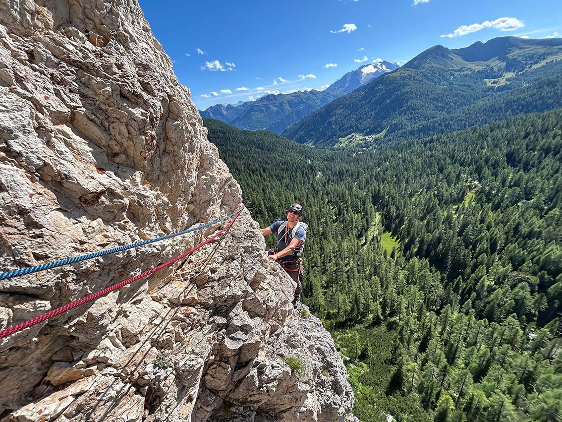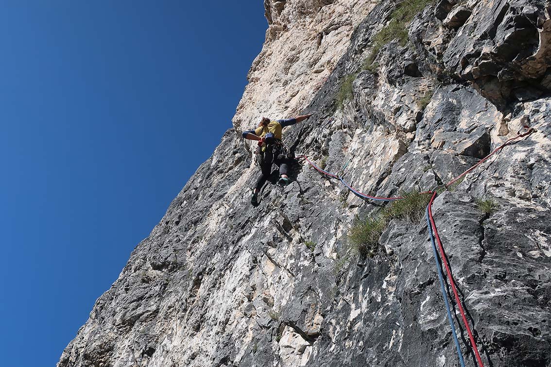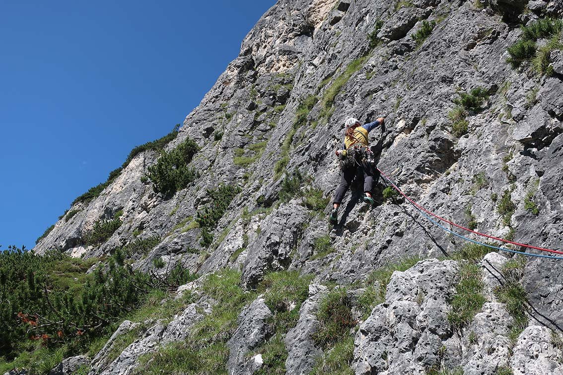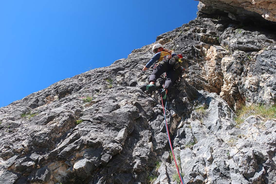 An den schweren Passagen gut mit Bohrhaken abgesichert, in den leichten Seillängen weitere Abstände.