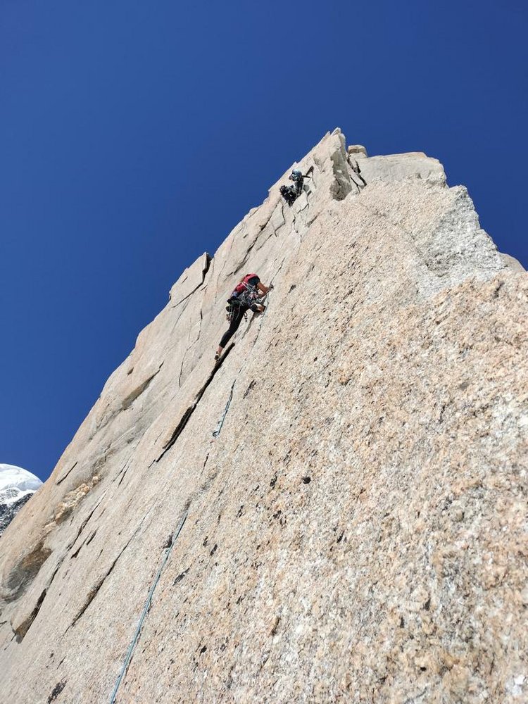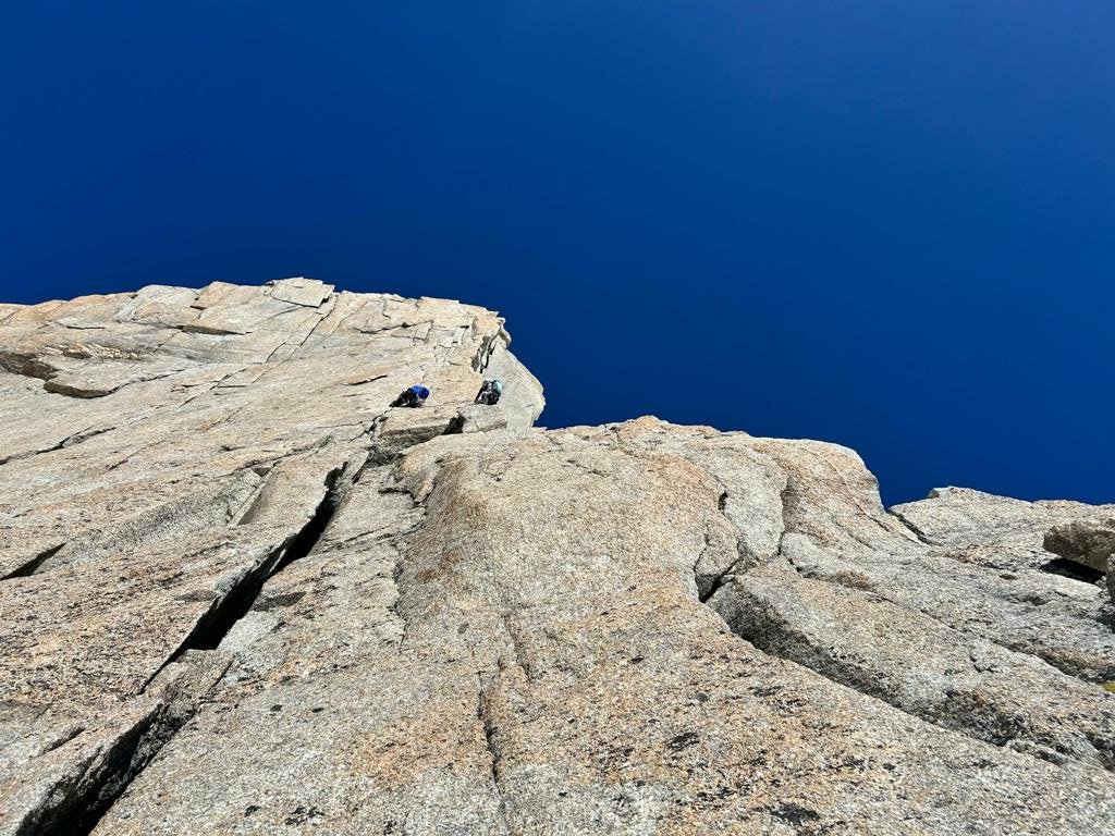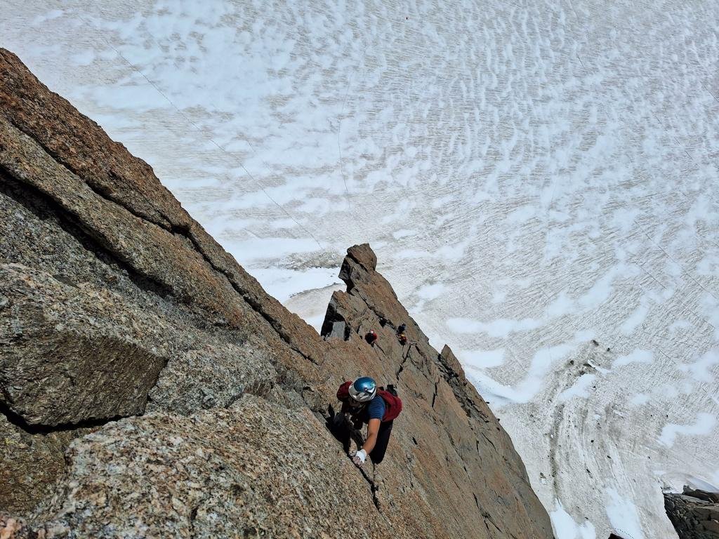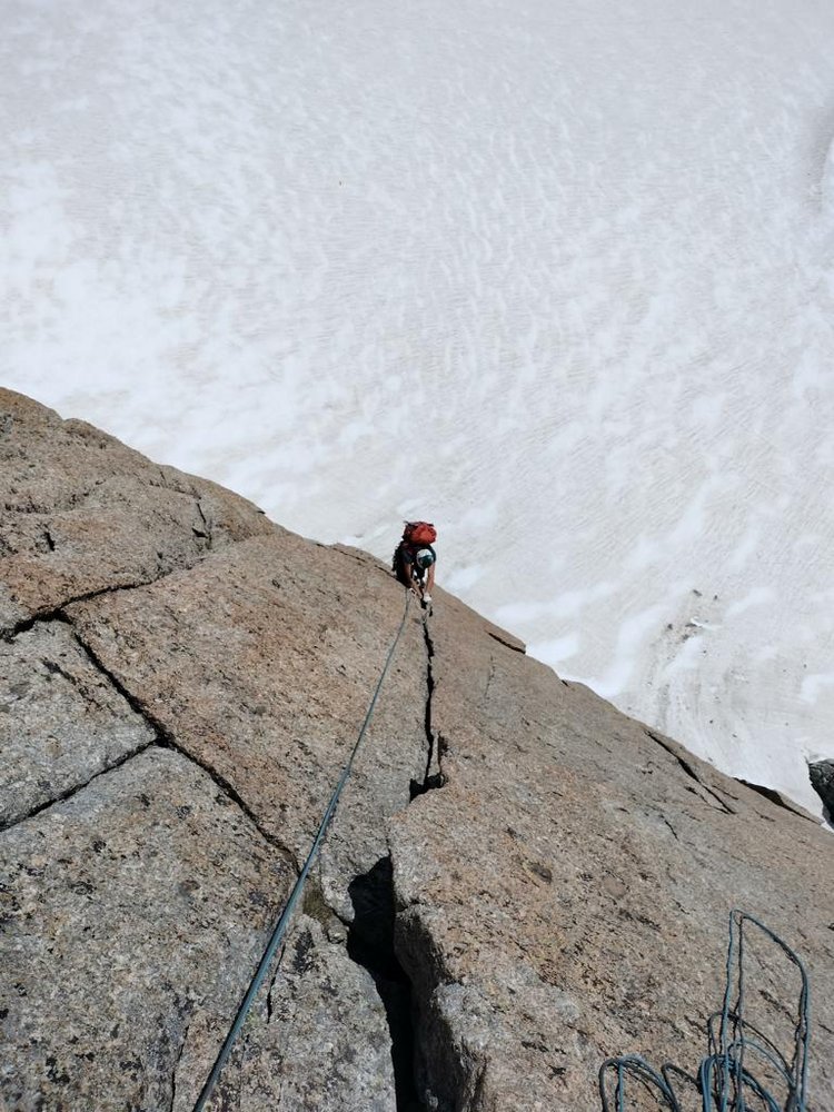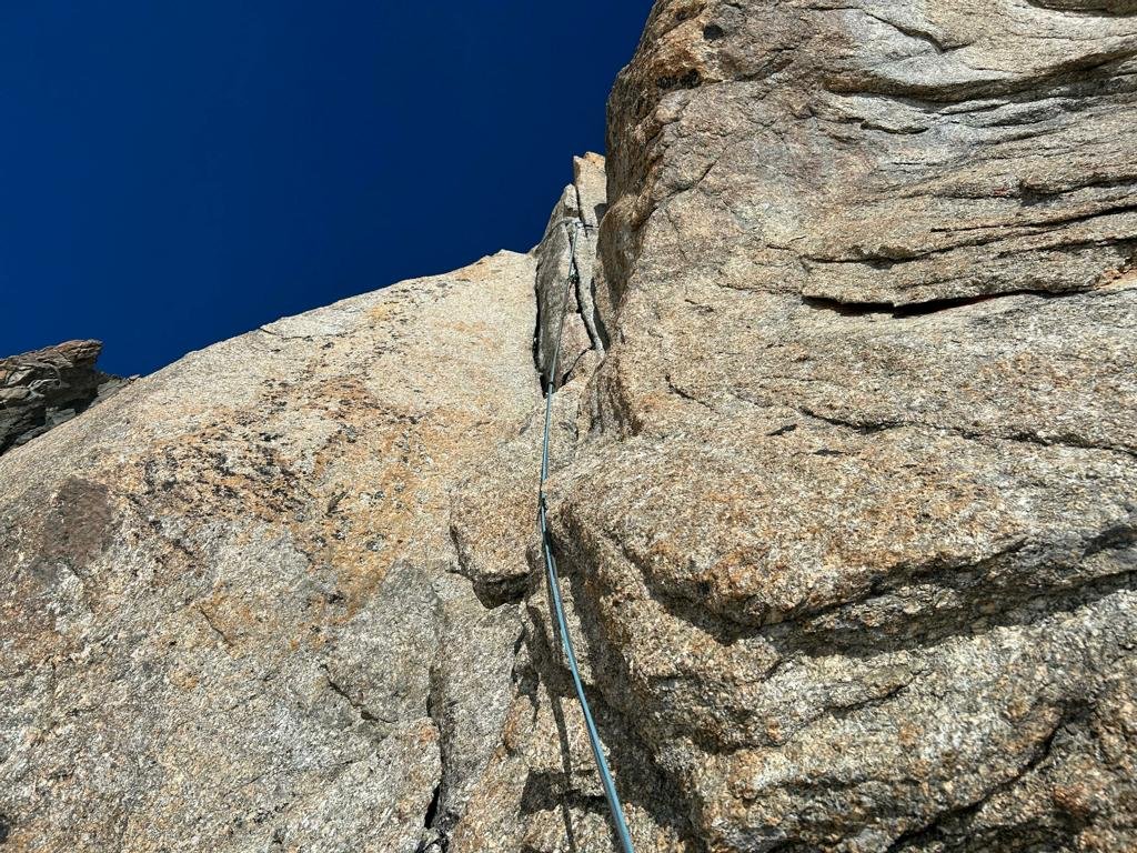 Wunderschöne Kletterei im Mont Blanc Massiv. Die Route schlängelt sich durch schmale und breite Risse den Point Lachenal rauf und man hat so gut wie nur fantastische Klettermeter. Man kann bequem oben aussteigen und zufuß zurück zur Midi oder Hellbronner gehen. Eine wirklich lohnenswerte Route.