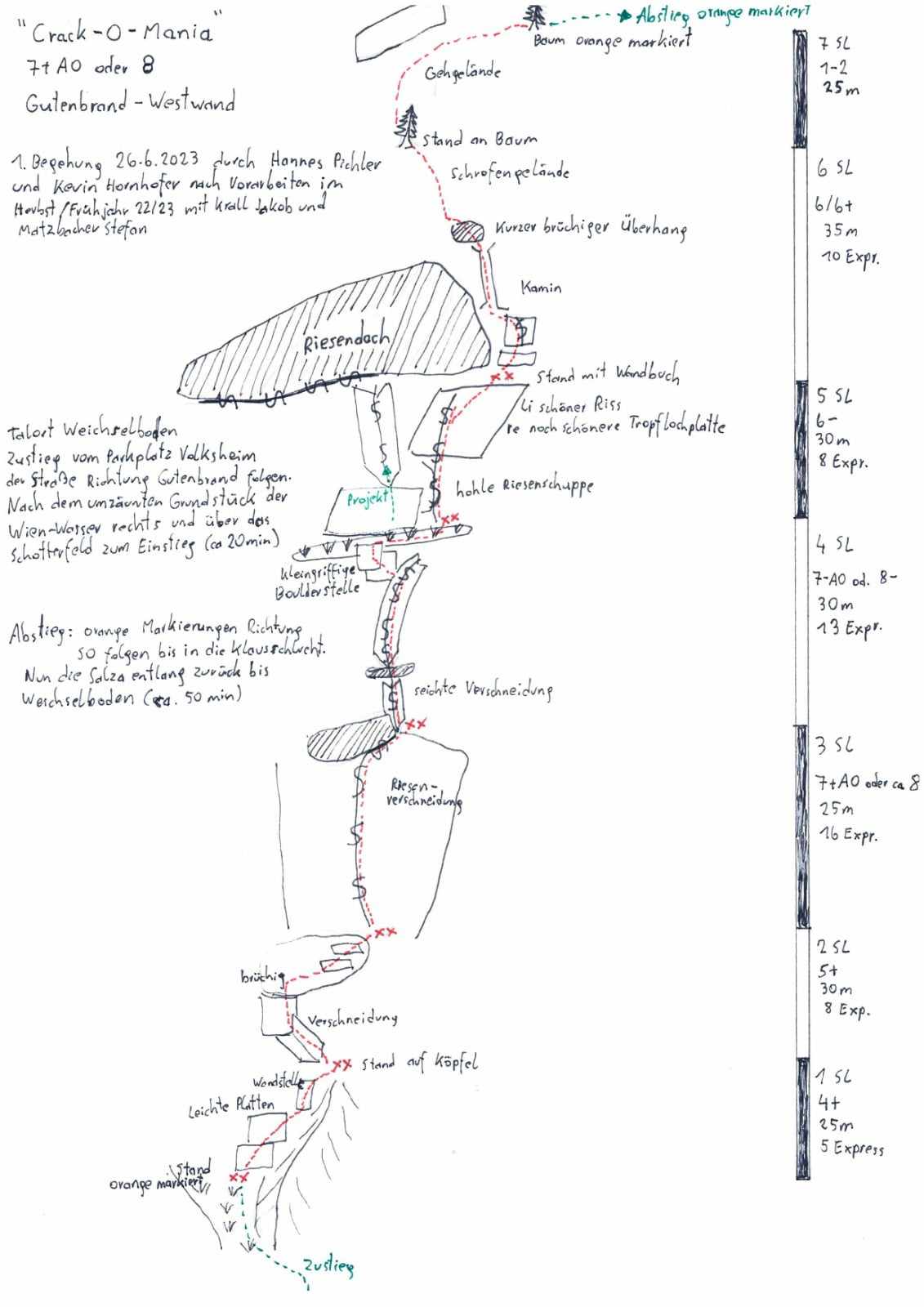 Die Linie von der 4SL den Riss gerade hinauf bis unter das Riesendach und dann den Hangel nach Links ist noch ein Projekt und wird noch gebohrt, nähere Infos folgen dann.