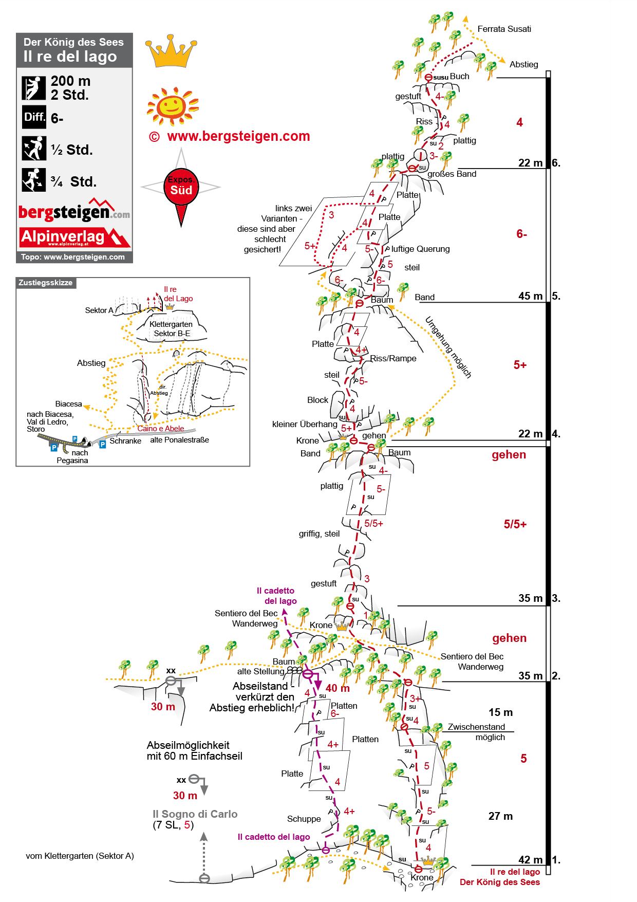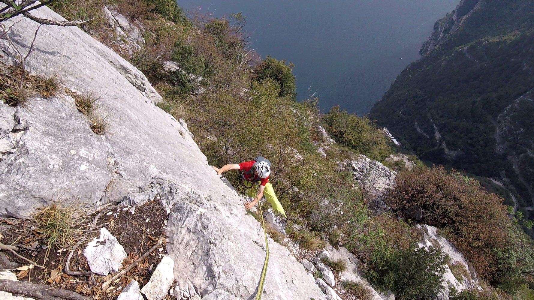 Alternativ und lohnender: Man beginnt unten mit der Kain und Abel (Via Caino e Abele). Eine sehr gut abgesicherte Plaisir-Route, welche sich perfekt eignet, um sich für "Der König des Sees" aufzuwärmen.