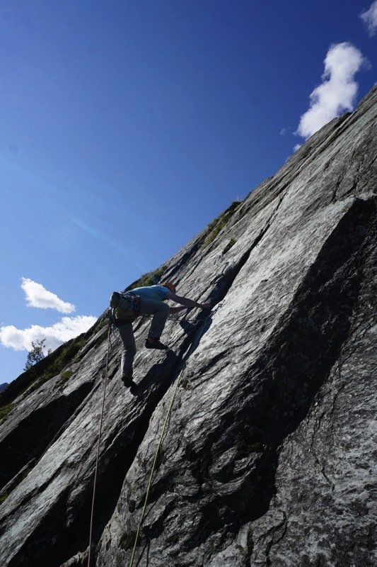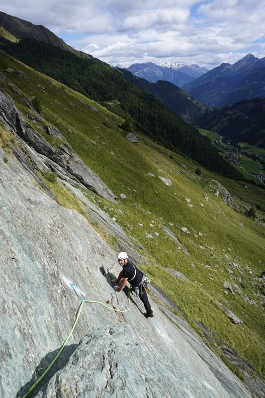 Sehr schöne Platten- und Wandkletterei auf bombenfesten, ausgewaschenen Grünschieferplatten. Durch die sonnseitige Lage kann bis sehr spät im Jahr bzw. früh im Jahr geklettert werden. Äußerste Vorsicht soll bei Schnee (Lawinenstreifen!) bzw. Gewitterlage geboten werden.