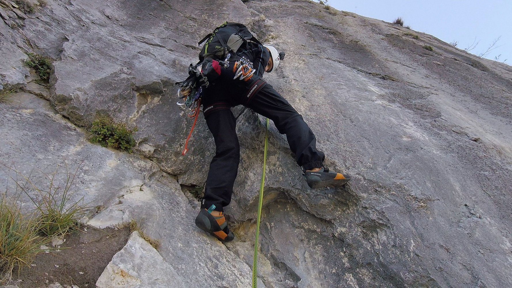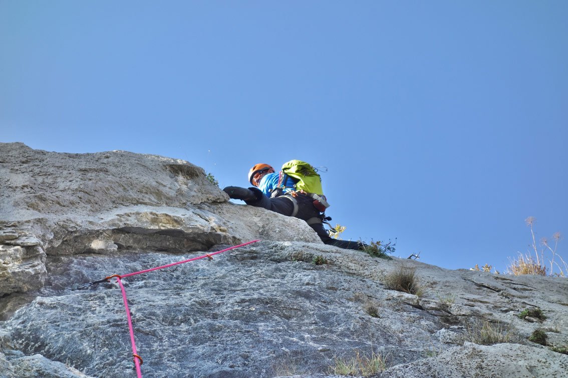 An wenigen Passagen ist der Fels nicht ganz fest - vor allem im unteren Wandteil nach dem Einstieg.