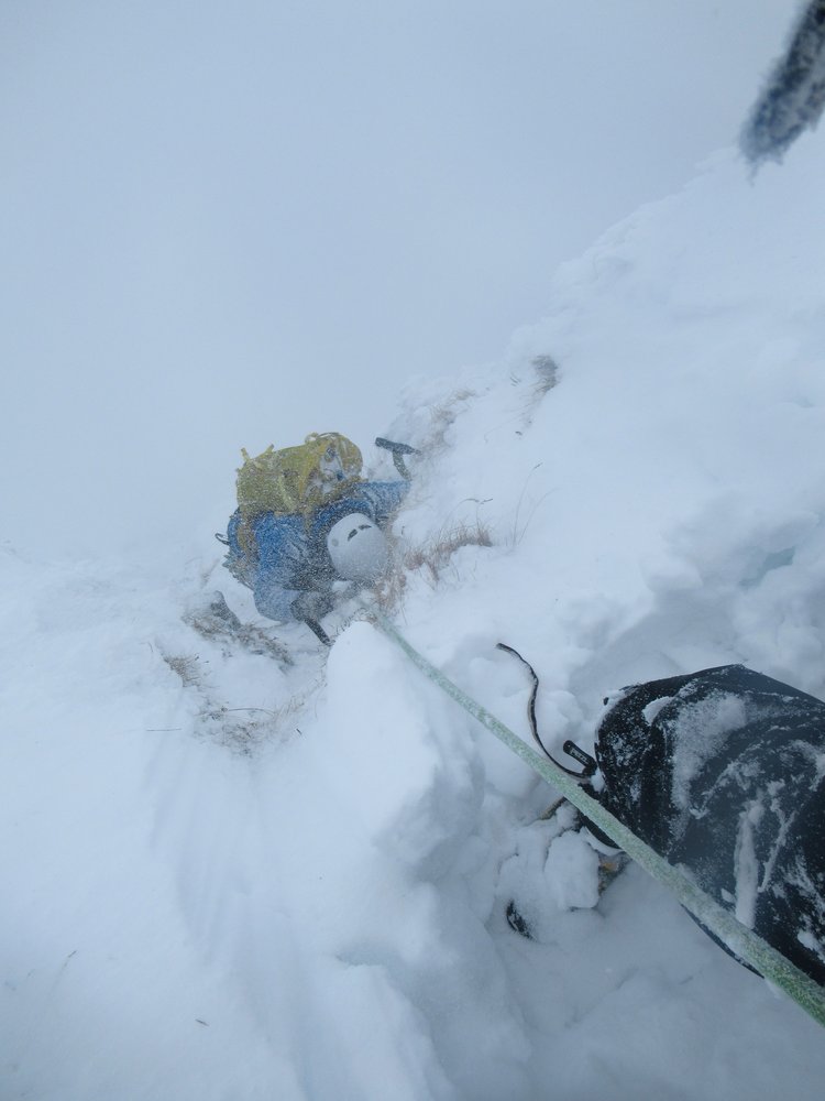 Den zentralen Pfeiler bis ans Ende, von hier linkshaltend durch eine ausgeprägte Rinne, gerade zum Gipfel.