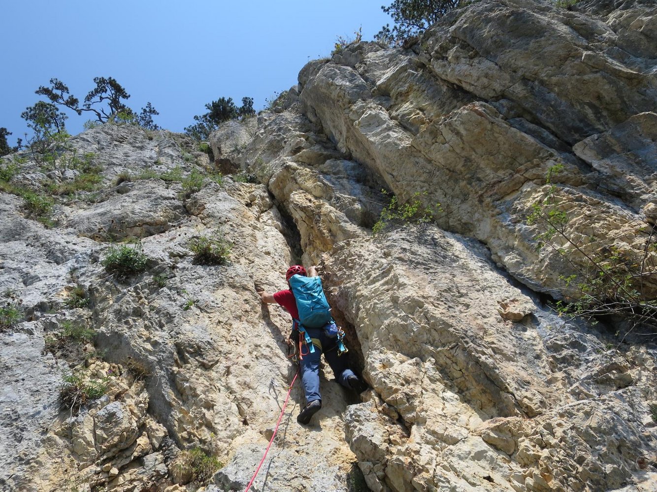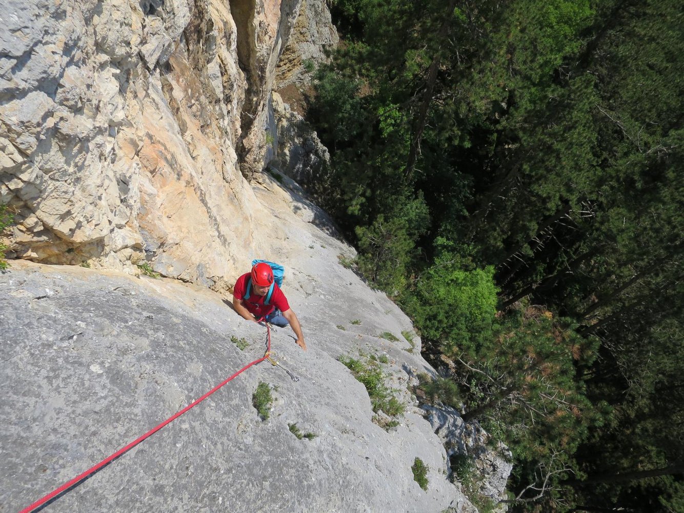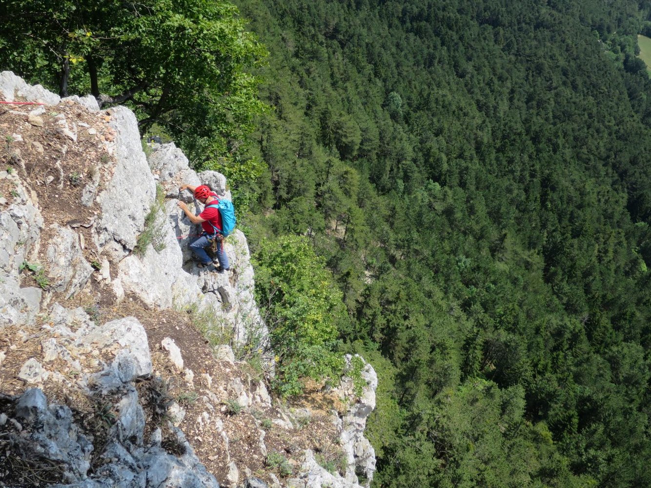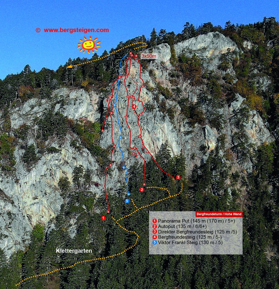 Sehr lohnende Tour im rechten Teil des Teufelsgrats. Die erste Seillänge führt über eine wundervolle Plattenrampe und gehört zum Besten, was die Hohe Wand in dieser Schwierigkeit zu bieten hat. Auch die restlichen drei Seillängen sind schön, lediglich in der zweiten müssen ein paar Meter in einer etwas erdigen Rinne überwunden werden.