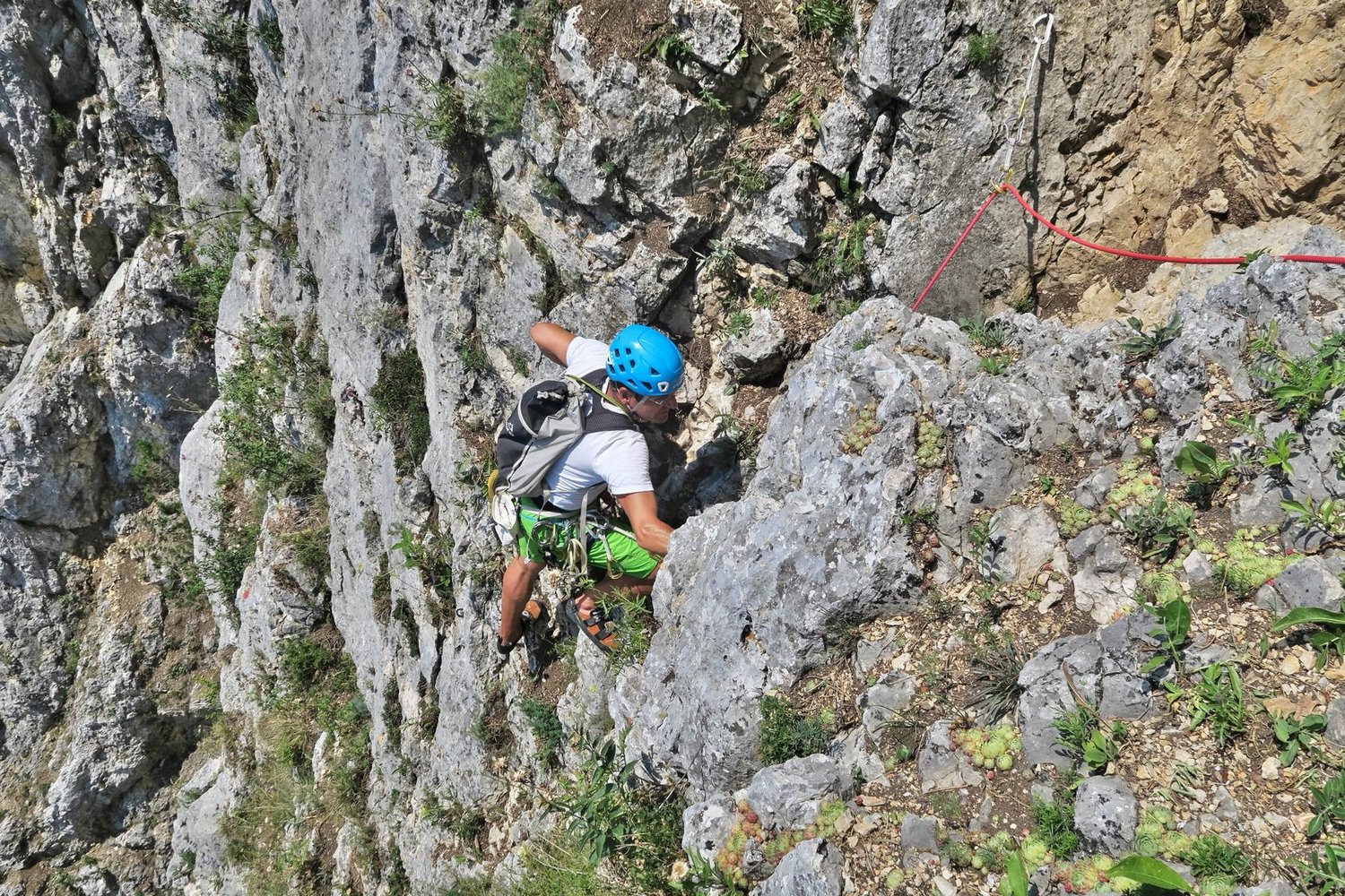 50 m Einfachseil, 8 Expr. Schlingen, Bandschlingen, Sanduhrschlingen.