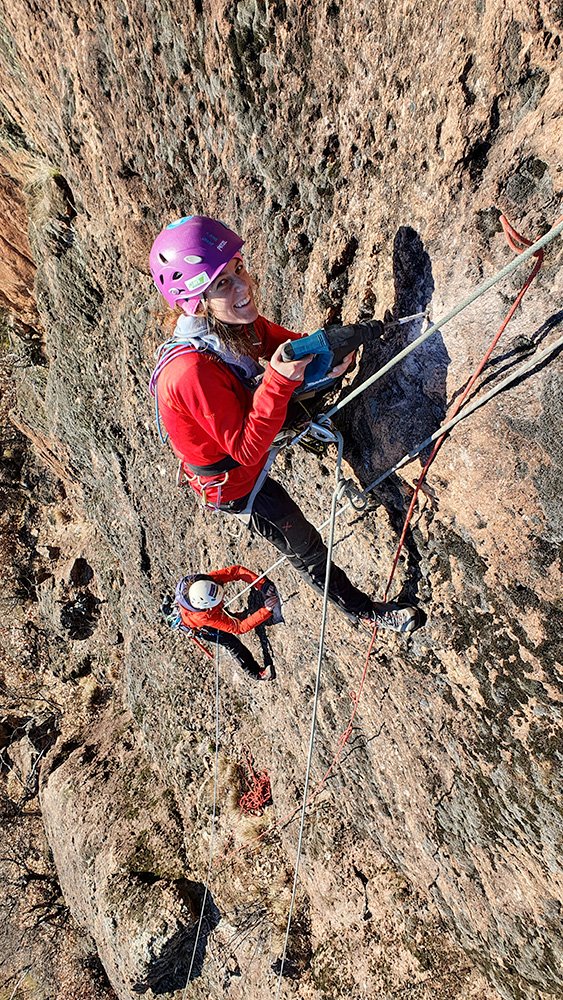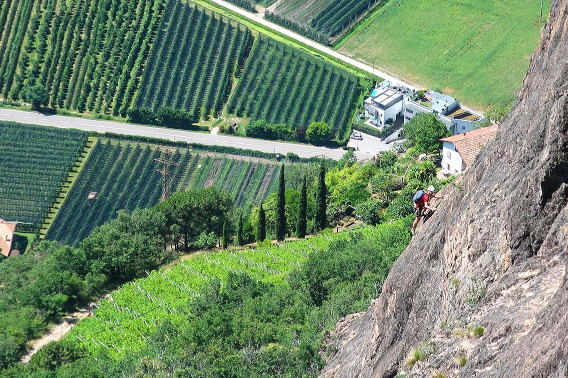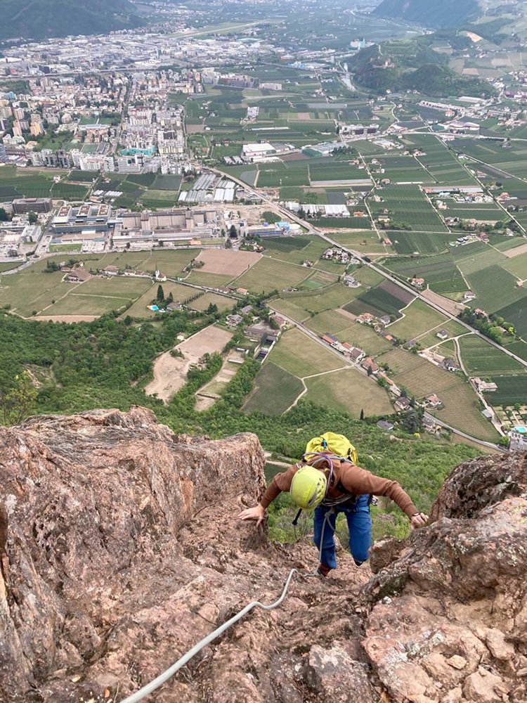 Die Dirty Flirty ist eine sehr gute, nicht allzu schwere Route oberhalb von Bozen - perfekt für ein romantisches Kletterdate! Vom Tal aus betrachtet erscheint die rötliche Porphyr-Wand für Kletterer von geringem Interesse. Erst wenn man Seillänge für Seillänge klettert, erkennt man die Vielseitigkeit dieser Wand. Die Route verläuft im linken Wandbereich, nicht allzu weit von der Route Sonntagsspaziergang entfernt. Dieser Bereich ist von einer langgezogenen Schulter zweigeteilt. Die ersten drei Seillängen führen durch steile Platten auf die Schulter, welche mit zwei Verbindungslängen (mit etwas Gehgelände) überwunden wird. Danach folgen zwei weitere Seillängen an sehr schönen Platten in bester Genusskletterei zum Ausstieg. Bei der Tour beginnt man quasi beim Ausstieg und steigt vom Gasthof Noafer zum Einstieg ab - wenn man auch noch den Sonntagsspaziergang dran hängt, kommt ein perfekt ausgefüllter Porphyr-Klettertag heraus!