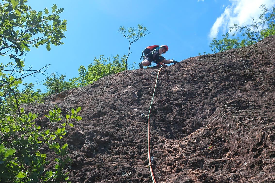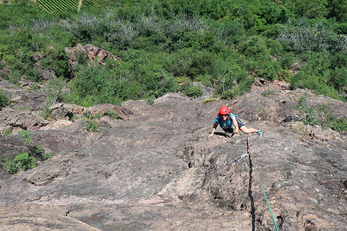Wegen der südlichen Lage wird es im Sommer an den Felsen sehr heiß - wenn man aber einen Tag mit Wind erwischt, ist das Klettern durchaus erträglich.
