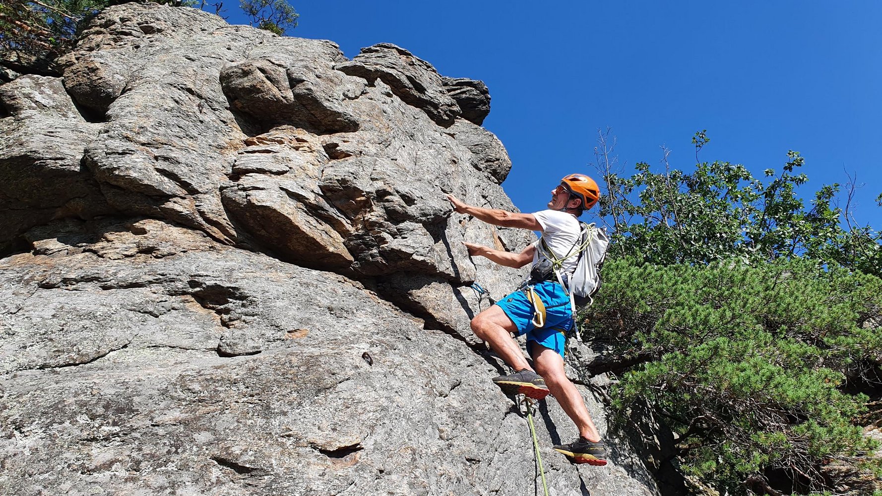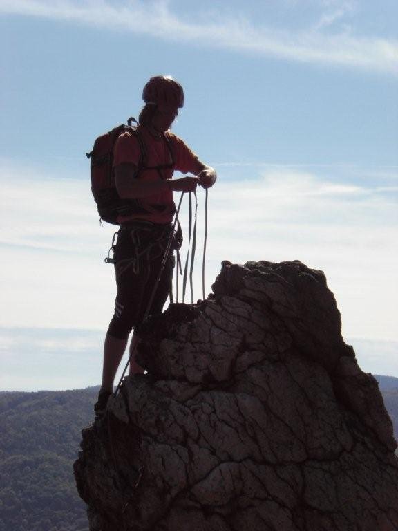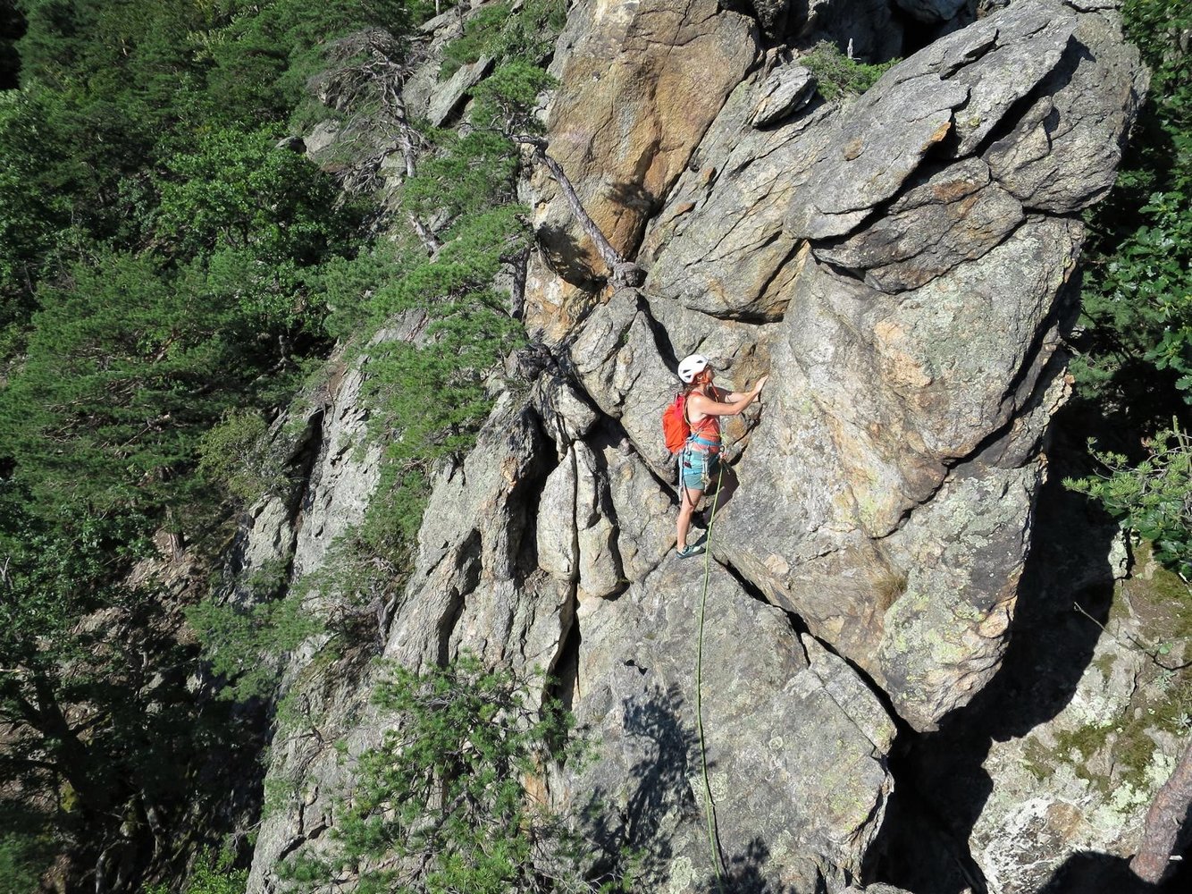 Einfachseil, so kurz wie möglich min. aber 35 m. Mittlere Friends, KK-Grundsort., 7 Expr. Schlingen, Bandschlingen für Stand und Helm.