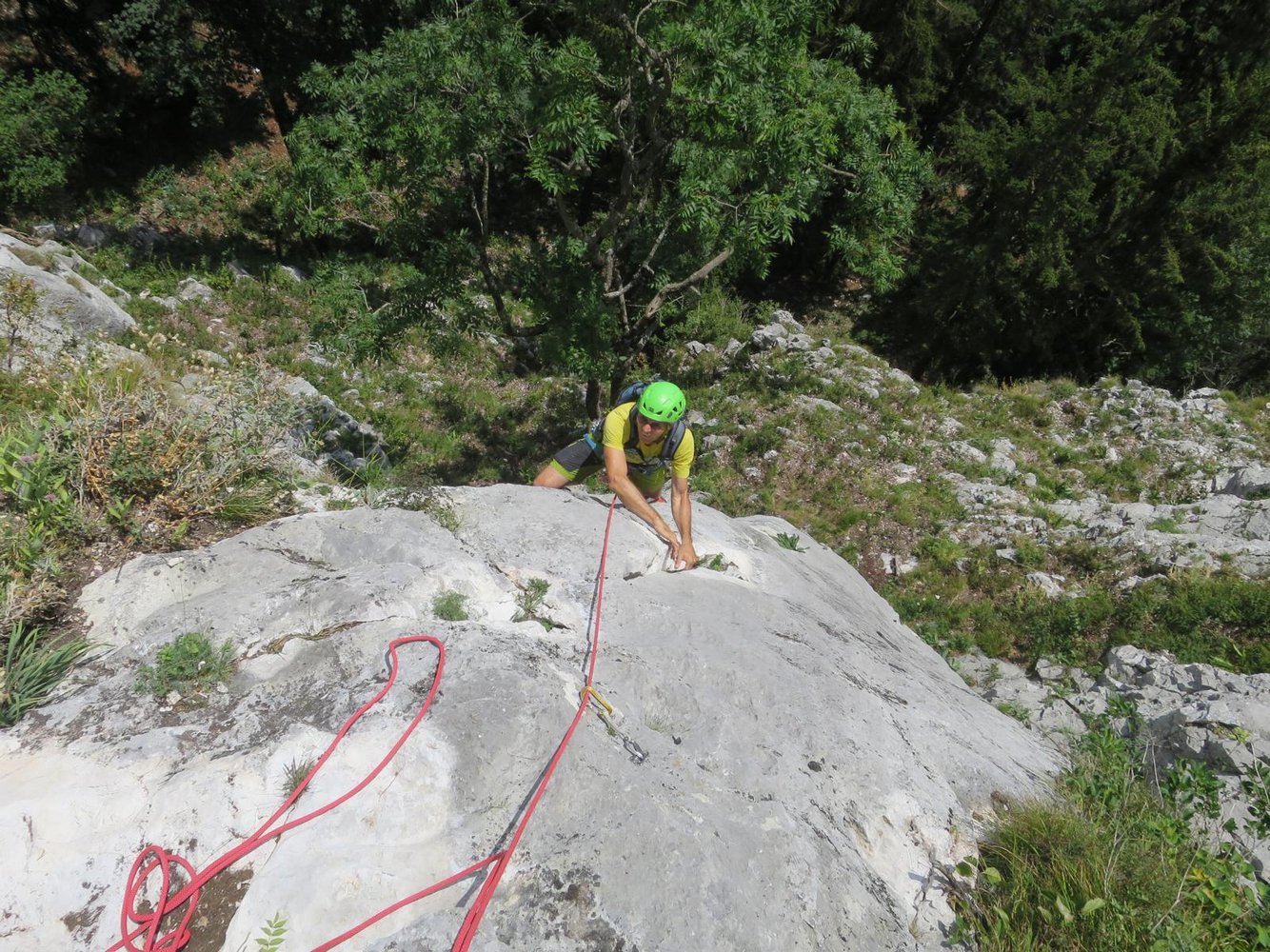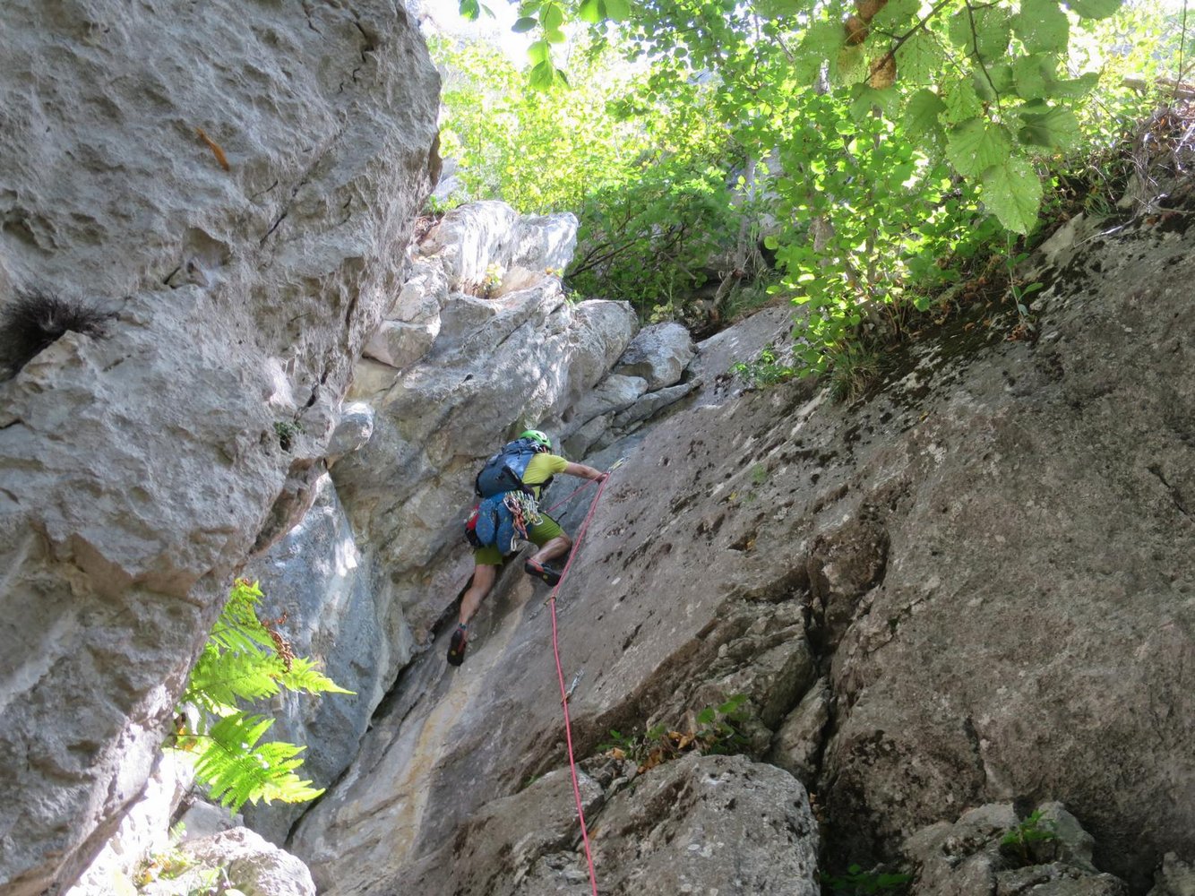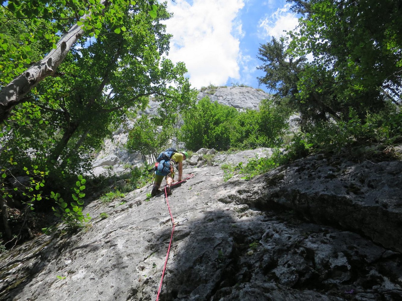 Nach der 8. 9. und 10. SL orographisch rechts zur Gamswiese queren.