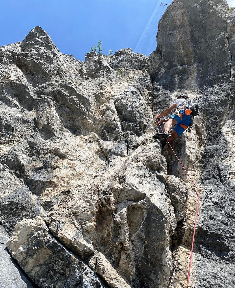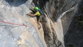 Sehr gut mit Bohrhaken und Sanduhren gesichert.