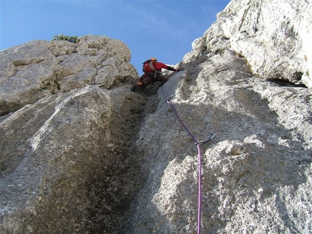 Wenn man die beiden Seillängen oberhalb des Grubenpfades noch klettert, so erhöhen sich die Schwierigkeiten auf 6+ oder 5+ A0. Da das Gelände darüber unlohnend ist, muß man vom Ende der letzten Seillänge 2 x 20 m wieder zum Grubenpfad abseilen.